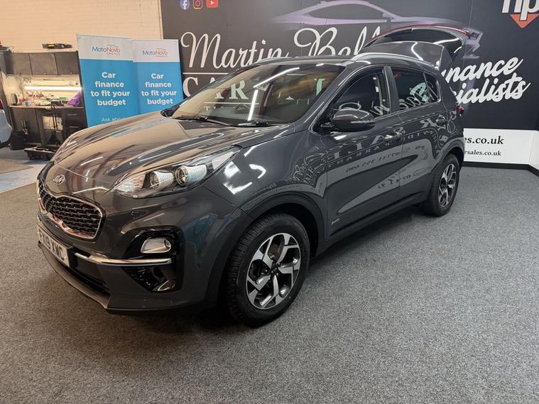 19 KIA SPORTAGE 1.6T GDI ISG-2 AWD Finished in Dark Penta grey metallic with Ebony interior.Genuine 58000 miles one former keeper with full service history .Viewing and test drive essential comes with reverse camera bluetooth media sat nav apple play cruise climate privacy heated seats reverse camera with parking sensors.All our cars are prepared to the highest possibe standard come with 2 keys all the correct paperwork.