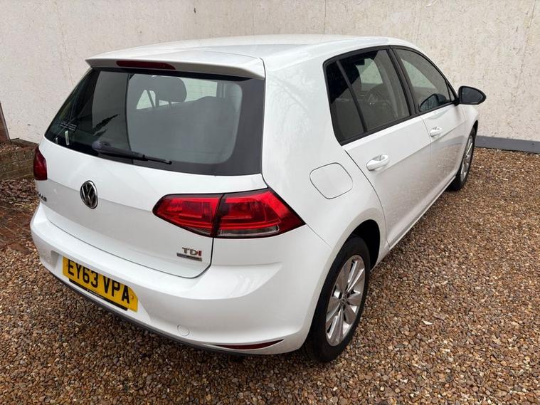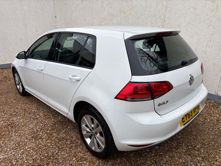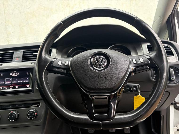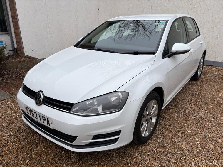 THIS WELL PRESENTED VW GOLF FINISHED IN WHITE. COMES WITH 2 KEYS, GREAT SERVICE HISTORY INCLUDING A CAM BELT KIT REPLACEMENT. FEATURES INCLUDE, AIR CONDITIONING, BLUETOOTH HANDS-FREE, TOUCHSCREEN DAB DIGITAL RADIO WITH AUX AND USB POINT, BLUETOOTH MEDIA CONNECTIVITY, MUTLI FUNCTION LEATHER STEERING WHEEL, CRUISE CONTROL, AUTO LIGHTS, 4 X ELECTRIC WINDOWS, ELECTRIC MIRRORS, REMOTE CENTRAL LOCKING, DRIVERS HEIGHT ADJUSTER, 6 SPEED MANUAL GEARBOX AND 15 ALLOY WHEELS.