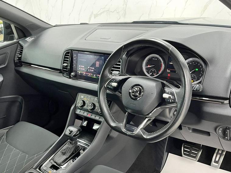 This 2021 Skoda Karoq TSI SportLine presents an exceptional ownership proposition, having been cherished by just one owner from new. With only 33, 874 miles on the clock, this Euro 6 compliant 1.5 litre petrol model boasts an MOT valid until February 2027, offering peace of mind for years to come. The SportLine trim level ensures a sporty aesthetic and feel, making it a stylish choice for any driver. The Skoda Karoq is renowned for its practicality, and this SportLine variant is no exception, offering generous boot space for all your needs. Its performance is equally impressive, with a brisk 0-60mph acceleration time of just 8.5 seconds, demonstrating its capability. Furthermore, its placement in a low insurance group makes it an economical option to own and run, highlighting its advantage over many comparable vehicles.
