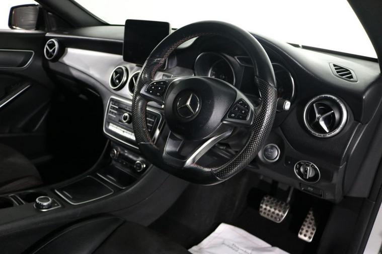 This desirable Mercedes CLA220D AMG Line finished in Polar Silver looks fantastic complemented by 18 inch AMG Gloss Black Alloy Wheels, Rear Privacy Glass, LED Headlights and AMG Body Styling. Find your way with integrated SATELLITE NAVIGATION with LCD Display. Park in ease with FRONT & REAR PARKING SENSORS. Keep connected with BLUETOOTH Phone System. Sit in luxury with 1/2 LEATHER Upholstery. Comfortable to drive with Dual-Zone CLIMATE CONTROLLED and CRUISE CONTROL with Speed Limiting Function. Safe to journey with Attention Assist and Active Brake Assist. Also equipped with Auto Headlights, Rain-Activated Wipers, Dynamic Select, ISOFIX seats and Remote Door Locking with 2 x keys. Buy in confidence with SERVICE HISTORY with 5 x Documented Services.