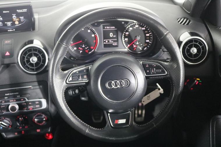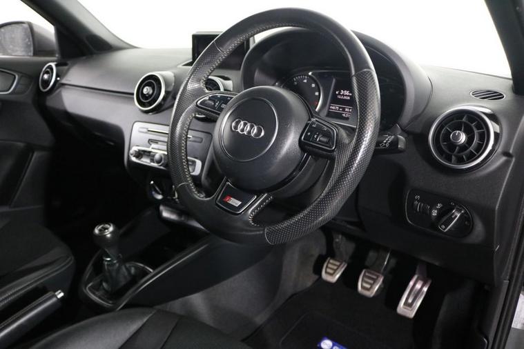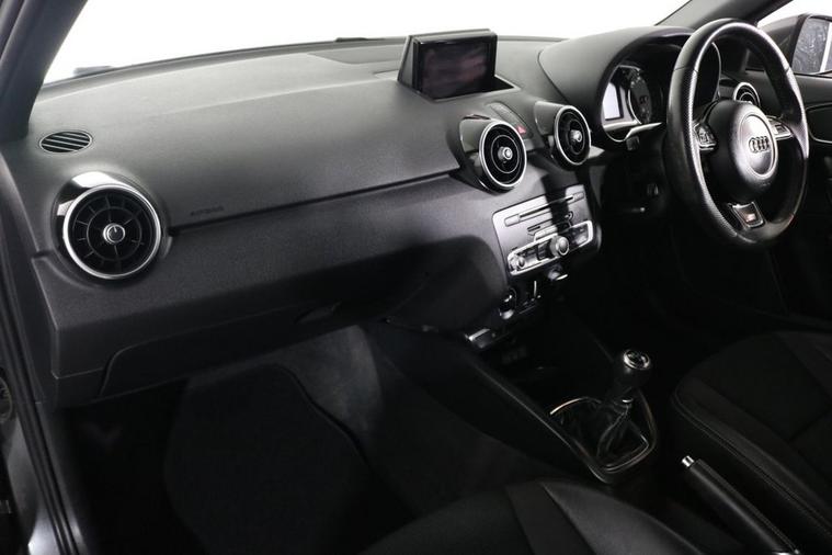 This desirable Audi A1 S Line Sportback finished in Daytona Grey looks fantastic complemented by 17 inch Alloy Wheels, S Line Body Styling and LED Running Lights. Enjoy economical motoring with JUST £35 ROAD TAX and up to 68 MPG. Find your way with integrated SATELLITE NAVIGATION with LCD Display. Park in ease with REAR PARKING SENSORS. Keep connected with BLUETOOTH Phone System. Listen to your music through DAB Digital Radio and Audi Music Interface. Comfortable to drive with AIR CONDITIONING and CRUISE CONTROL. Sit in luxury with S Line Embossed 1/2 LEATHER Upholstery. Well equipped with Auto XENON Headlights and Rain-Activated Wipers. Also fitted with ISOFIX seats, Multifunctional Steering Wheel, Audi Drive Select, Immobiliser, Alarm and Remote Door Locking with 2 x keys.