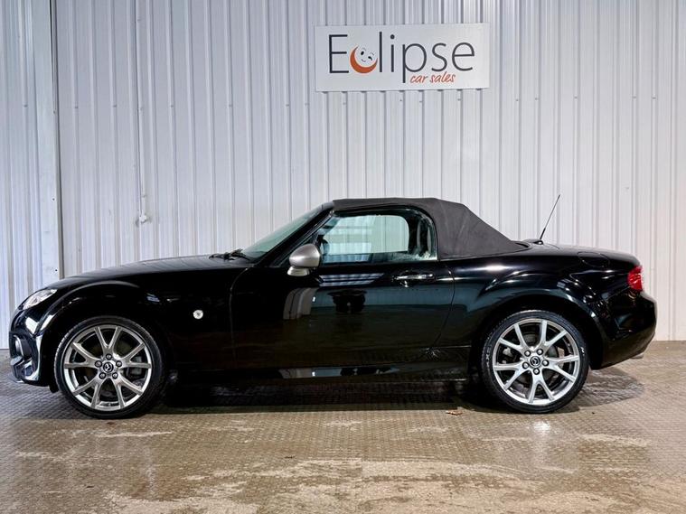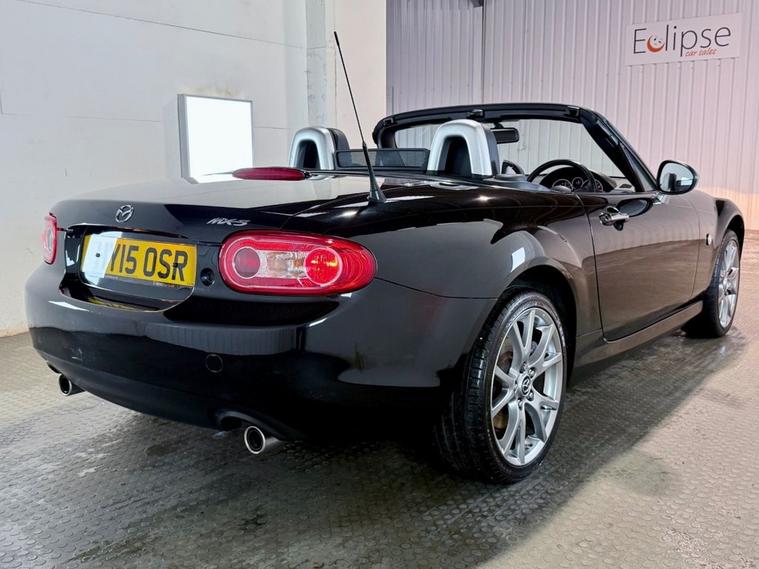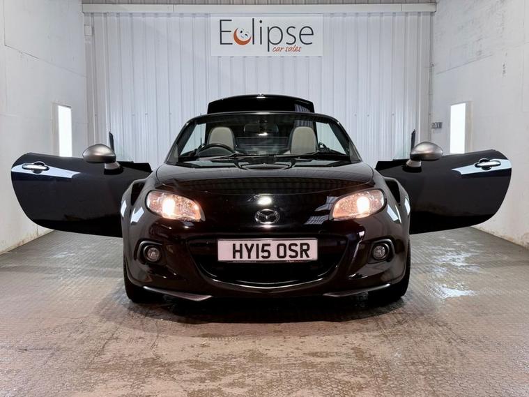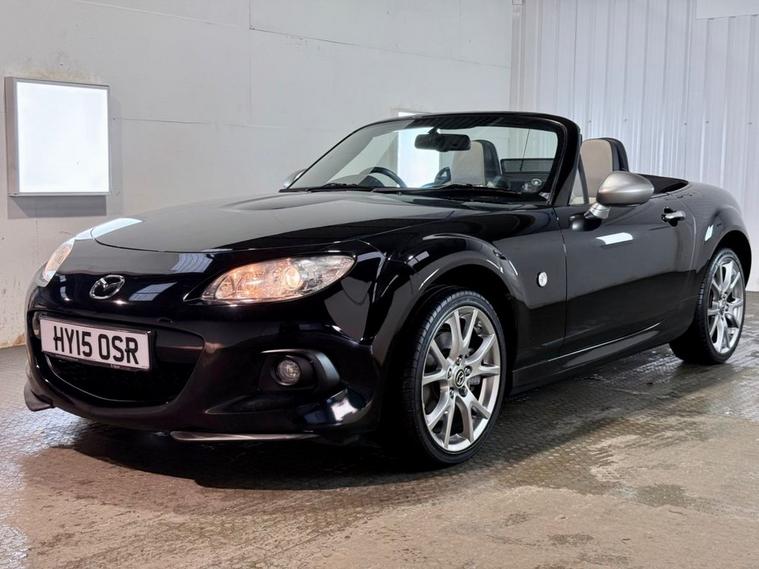 Mazda MX-5 1.8 Sport Venture Edition 2dr Convertible 5-Speed Manual Registered March 2015 (15 Reg) Finished in Brilliant Black with Stone Leather Interior | 17 Inch Alloy Wheels | Satellite Navigation | Bluetooth Connectivity | Heated Seats | Air Conditioning | Electric Windows | Leather Multifunction Steering Wheel | Xenon Headlamps | Electric Exterior Mirrors | Branded Floor Mats. Serviced at 2, 373 miles | 4, 563 miles | 7, 530 miles | 20, 771 miles | 26, 162 miles | 35, 987 miles | 42, 736 miles and will be serviced by ourselves prior to sale.