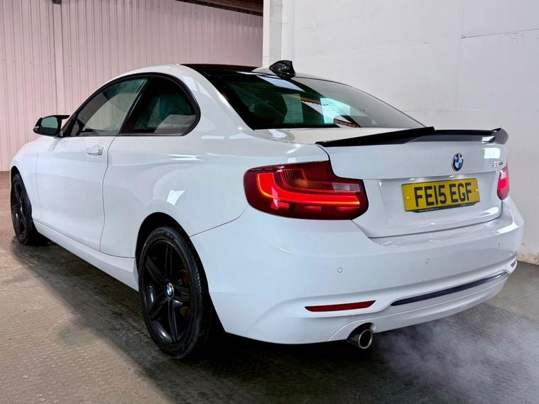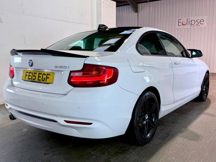 BMW 2 Series 2.0 220i Sport Coupe first registered in June 2015 (15 Reg). Finished in Alpine White with a red Highlight black cloth interior and 17 inch alloy wheels. Spec includes Rear Park Assist | Selectable Drive Modes | Bluetooth Connectivity | DAB Radio | Sun Protection Glazing | Windscreen with Grey Shade Bend | Sun Protection Package | BMW Navigation Package | Enhanced Bluetooth Telephone Preparation with USB Audio Interface and Voice Control. Serviced at 47743 Miles | 73581 Miles | 87190 Miles | 105801 Miles | 106227 Miles and a new clutch kit and dual mass flywheel at 107827 Miles.