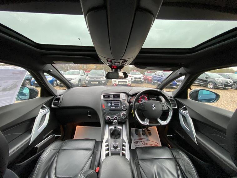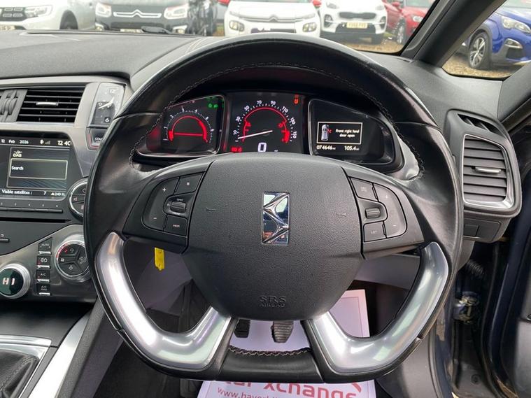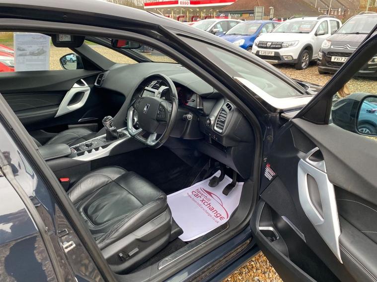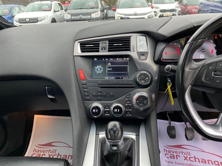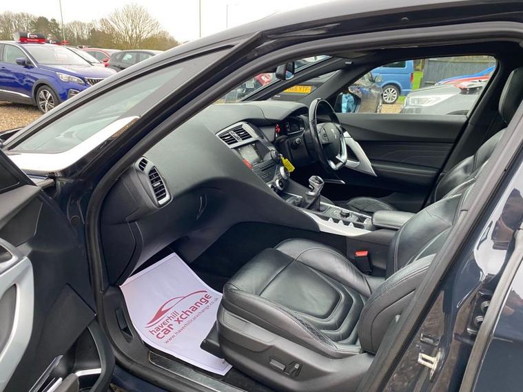 EMYWAY COLOUR SATELLITE NAVIGATION WITH EUROPEAN MAPPING+DAB DIGITAL RADIO+BLUETOOTH SYSTEM+DUAL ZONE CLIMATE CONTROL AIR-CONDITIONING+AUTOMATIC HEADLIGHT ACTIVATION+RAIN-SENSING WINDSCREEN WIPERS+LUXURIOUS LEATHER UPHOLSTERY+FRONT & REAR PARKING ASSISTANCE WITH PARKING CAMERA+SUNROOF+VAPOUR GREY PAINT+18 INCH ALLOY WHEELS. At Haverhill Car Xchange we would like to offer you our Citroen DS5 DSport Hatchback which has been finished in a metallic Vapour Grey paint with luxurious Black Leather upholstery. Excellent Specification Includes an eMYWAY Colour Satellite Navigation System-European Mapping, Live Traffic Information, eTouch Emergency and Assistance System, DAB Radio-CD-MP3 Player, Bluetooth System, Auxiliary Socket, USB Socket, 12 Volt Power Socket, Automatic Digital Air-Conditioning, Gear Efficiency Indicator, Cruise Control with Speed Limiter and Memory Settings, Electric Front and Rear Windows with One-Touch Operation and Anti-Pinch, Body Coloured Bumpers/Door Handles/ Rear Roof Spoiler and Door Mirrors with Integrated Side Indicators, Automatic Headlight Activation, Xenon Dual Function Headlights, Guide Me Home Headlight Function, Front Fog Lights with Cornering Function, Leather Upholstery, Sunroof, Front and Rear Parking Assistance with Parking Camera, Leather Multifunction Steering Wheel, 18 Inch Alloy Wheels, Variable Power Assisted Steering, Hill Start Assist, ABS Breaking System, Airbags, Alarm, Immobiliser, Remote Central Locking and ISOFIX Anchorage Points for Child Seats.