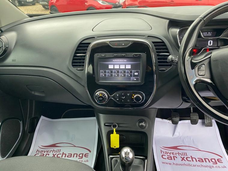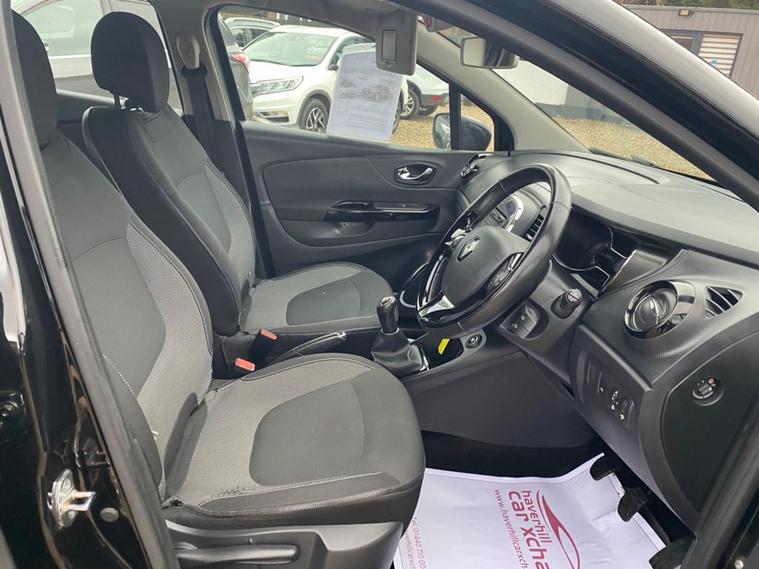 ONLY 41, 855 MILES+MEDIANAV MULTIMEDIA SYSTEM+CLIMATE CONTROL AIR-CONDITIONING+AUTOMATIC HEADLIGHT ACTIVATION+RAIN-SENSING WINDSCREEN WIPERS+ELECTRIC WINDOWS WITH ANTI-PINCH+DIAMOND BLACK PAINT+17 INCH ALLOY WHEELS. At Haverhill Car Xchange we would like to offer you our LOW MILEAGE Renault Captur Energy Dynamique Nav SUV which has been finished in a Diamond Black; paint with Carbon Cloth upholstery. Excellent Specification Includes a MediaNav Multimedia System, 12 Volt Power Socket, Climate Control Air-Conditioning, ECO Mode, Cruise Control with Speed Limiter, Front and Rear Electric Windows, Handsfree Keycard with Push Button Start-Stop Function, Body Coloured Bumpers/Door Handles/Rear Roof Spoiler and Door Mirrors, Automatic Headlight Activation, LED Daytime Running Lights, Fog Lights with Cornering Function, Rain Sensing Windscreen Wipers, Leather Multifunction Steering Wheel, 17 Inch Alloy Wheels, Variable Power Assisted Steering, Hill Start Assist, ABS Breaking System, Airbags, Alarm, Immobiliser, Remote Central Locking and ISOFIX Anchorage Points for Child Seats.