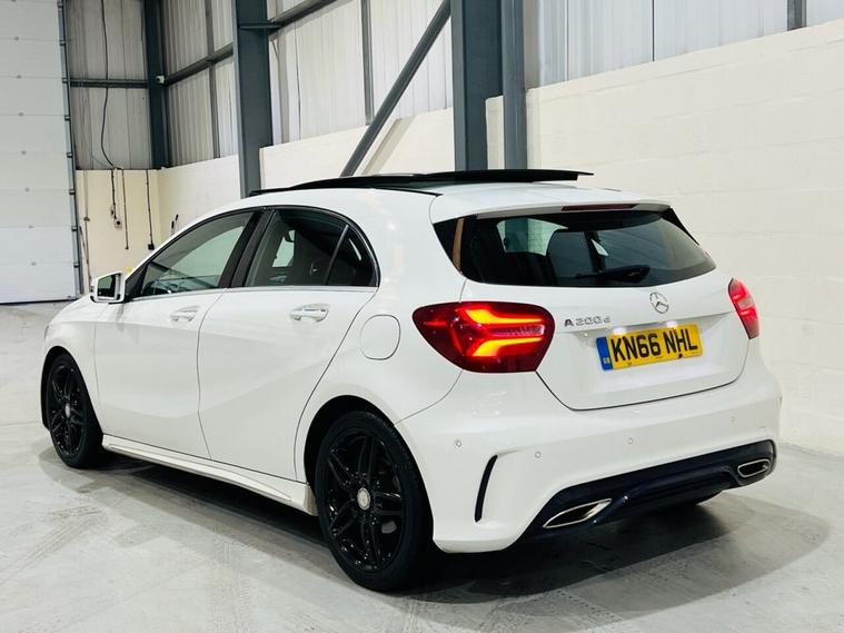 Mercedes-Benz A-Class 2.1 A200d AMG Line (Premium Plus) Hatchback 7G-DCT KN66 NHL | 80, 000 miles | White This Mercedes-Benz A200d AMG Line (Premium Plus) combines sharp AMG styling with smooth automatic diesel performance and an excellent level of specification. Powered by the proven 2.1 diesel engine producing 136 PS and paired with the refined 7G-DCT automatic gearbox, it delivers impressive fuel economy with effortless everyday usability Finished in crisp white with a black interior, this example benefits from the highly desirable Premium Plus specification, offering a premium, technology-focused cabin. The panoramic glass roof floods the interior with natural light, while ambient lighting enhances the modern feel. Comfort is further improved with heated seats and electric memory front seats, and connectivity is seamless thanks to Apple CarPlay Key Features AMG Line Styling Premium Plus Specification 7G-DCT Automatic Gearbox Panoramic Glass Roof Ambient Interior Lighting Heated Front Seats Electric Memory Seats Apple CarPlay Additional Information Euro 6 (s/s) 136 PS 2.1 Diesel Engine ULEZ Compliant Sporty & Efficient Premium Hatchback A well-specified A-Class AMG Line Premium Plus, offering standout looks, strong economy, and a high-end interior specification in a desirable colour combination