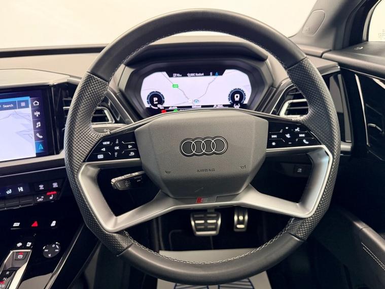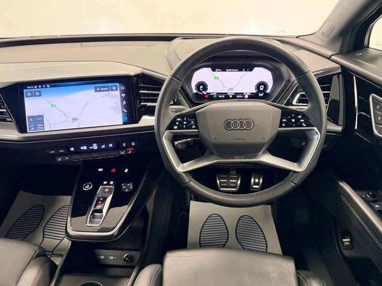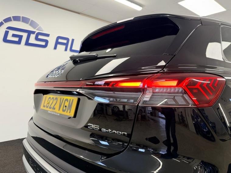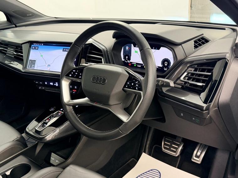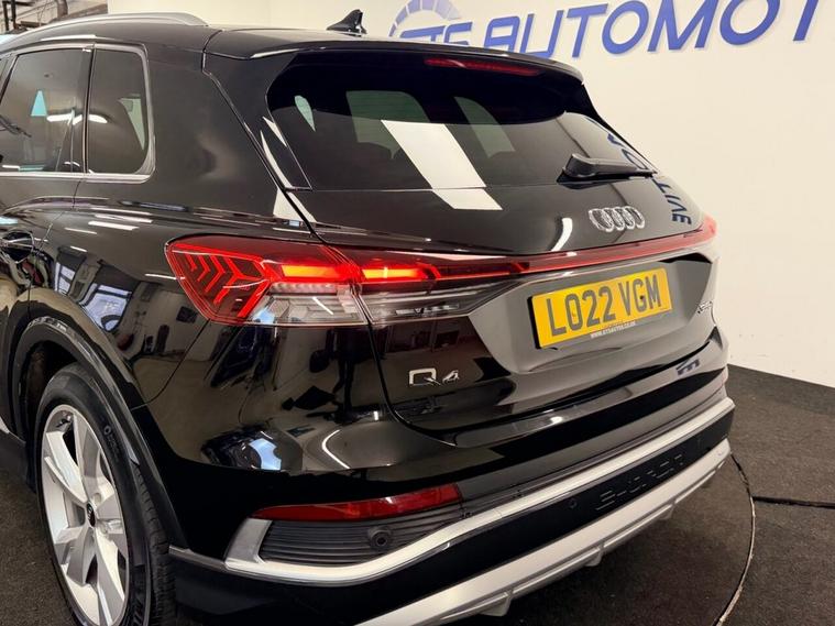 A Stunning and Well Cared For AUDI Q4 E-TRON 35 S-LINE ELECTRIC 55kWh AUTO 170bhp Auto in Mythos Black Metallic with Black Twin Leather Interior. An Amazing Specification with 11.6 inch Satellite Navigation, Heads-Up Display, Virtual Cockpit, Climate Controlled Air Conditioning, Heated Front Seats, S-Line Sports Seats, 20 Inch Five Double Spoke Alloys, APPLE Car Play, Privacy Heat Insulating Tinted Glass, Bluetooth Mobile Phone Prep, Cruise Control, Folding Door Mirrors, Acoustic Front and Rear Parking Sensors with Rear Camera, Four Spoke Multi-Function Steering Wheel and Front and Rear Electric Windows. Two Keys. Just Serviced and a Long MOT Until 10th March 2027. VIDEO AVAILABLE ON OUR WEBSITE!!! Welcome to GTS Automotive in the Ribble Valley. FREE DELIVERY WITHIN 50 MILES AVAILABLE - Ask For Details. Vehicle Supplied With a SIX Month Nation Wide Warranty. We Are FINANCE Specialists With Access To Over 20 Finance Specialists. LOW RATE FINANCE AVAILABLE - Subject to Status with Free Quotations and Easy Applications via our Website dealer's website - More PHOTOS On Our Website. PART EXCHANGE WELCOME. We Are an AA Approved Dealer. We Are A Friendly Family Company Who Are Happy To Help. Most Major Credit and Debit Cards Accepted. ALL Of Our Cars Are HPI Clear. Open 7 Days a week !!! Come and Visit Us! Five Minutes From Junction 31 of the M6 Motorway or Ten Minutes From The End of the M61 Motorway. Over 100 Cars in Stock! EXTEND YOUR WARRANTY to 12 MONTHS FROM ONLY £399 or 24 Months From Just £499 inc Road Side Assistance - LIMITED TIME OFFER!