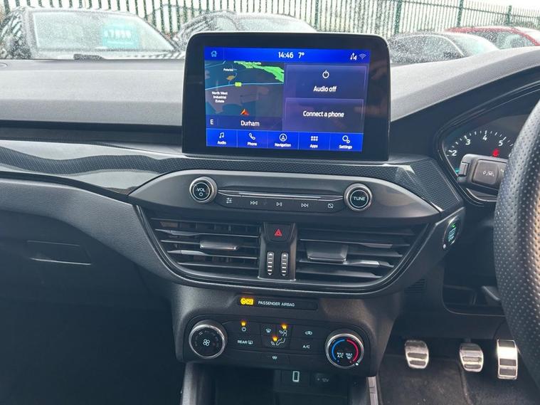 This 2020 Ford Focus T ST-Line offers a compelling blend of style and practicality, making it an excellent choice for those seeking a reliable and well equipped vehicle. Powered by a 1.5L petrol engine and meeting Euro 6 emissions standards, this model comes with the desirable ST-Line trim, enhancing its sporty appeal. Inside, youll find the intuitive Ford SYNC system featuring an 8 inch TFT touchscreen, complete with Android Auto and Apple CarPlay for seamless smartphone integration. The car also includes manual air conditioning for your comfort and automatic on-off headlights, adding to its convenience. The Ford Focus T ST-Line stands out with its impressive fuel economy, achieving up to 47 miles per gallon, which indicates it is more economical than many similar vehicles. Furthermore, its low CO2 emissions highlight its environmental consideration, and it benefits from a low insurance group, suggesting lower running costs. Practicality is also a strong point, with generous boot space making it ideal for families or those who need to carry extra luggage.