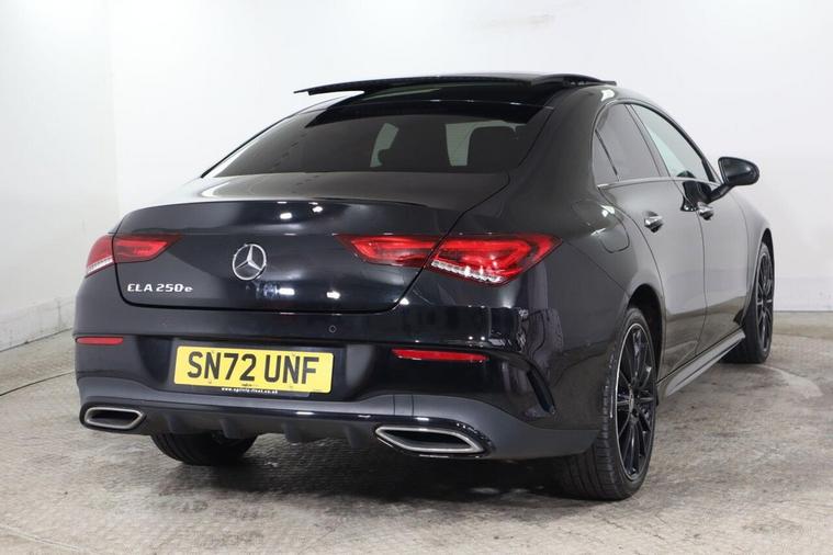 This 2022 Mercedes-Benz CLA250e AMG Line Night Edition is a superb example, having had only one owner since new. This stylish saloon features a 1.3 litre petrol plug-in hybrid engine, meeting Euro 6 emission standards. It boasts the desirable AMG Line Night Edition trim, enhancing its sporty appeal. For convenience and connectivity, you'll find dual Bluetooth interfaces and a 100W Mercedes-Benz sound system with six speakers. Parking is made effortless with the Parking Package, which includes front and rear sensors along with a rear camera. The KEYLESS-GO package allows for keyless entry, and automatic headlamp activation is handled by the Headlamp Assist system. This particular CLA250e offers a refined driving experience, combining efficient hybrid technology with the dynamic styling of the AMG Line Night Edition. The inclusion of the Premium Plus package further elevates its specification, ensuring a premium feel. The advanced safety and convenience features, such as the comprehensive parking assistance and keyless entry, demonstrate how this vehicle offers a superior level of comfort and ease of use compared to other models. Its low owner count and well appointed features make it a compelling choice for those seeking a modern and well equipped Mercedes-Benz.