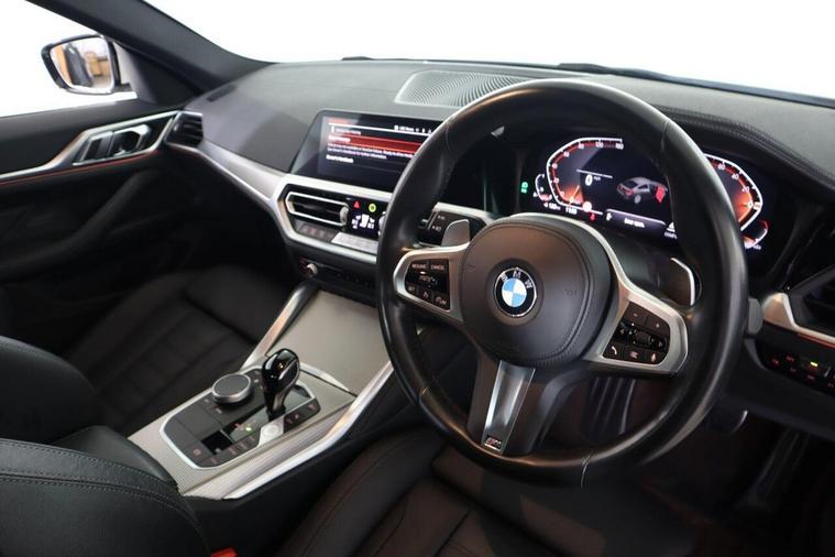 This 2022 BMW 4 Series Gran Coupe 420i M Sport is a superb example, having been cherished by just one owner since new. This stylish five door coupe combines the sleek aesthetics of a coupe with the practicality of four doors and a generous boot space, making it an ideal choice for those seeking both form and function. Under the bonnet, a responsive 2.0 litre petrol engine provides an engaging driving experience, meeting Euro 6 emission standards. The M Sport trim enhances the already impressive specification, featuring the BMW Connected Package Professional which seamlessly integrates Android Auto and Apple CarPlay for effortless connectivity. Navigating and driving are made simpler with the BMW Live Cockpit Professional, complete with Bluetooth, and bright LED headlights for excellent visibility. Parking is made easy thanks to the comprehensive Parking Assistant, which includes front and rear sensors along with a rear camera. Furthermore, the automatic three zone air conditioning ensures comfort for all occupants. The 420i M Sport accelerates from 0 to 62mph in a swift 7.9 seconds, demonstrating its dynamic performance capabilities.