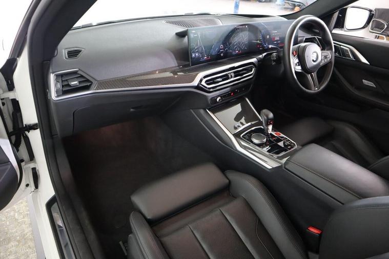 This 2024 BMW M4 BiTurbo Competition presents an exceptional opportunity with its remarkably low mileage of just 8087 miles. This Euro 6 compliant M4, featuring a potent 3.0L petrol engine, offers a thrilling driving experience. Inside, you'll find a wealth of advanced technology and comfort, including a Wireless Charging Tray for your devices, a premium Harman Kardon Surround Audio Sound System, and the Connected Package Professional which seamlessly integrates Android Auto and Apple CarPlay. The Driving Assistant system provides an extra layer of safety with Blind Spot Assistance, while the Electric Memory Seats ensure your perfect driving position is always easily recalled. The highlights of this M4 Competition demonstrate its superiority over similar vehicles. Its impressive acceleration, achieving 0-62mph in a mere 3.9 seconds, sets it apart from the crowd. Furthermore, its low insurance group rating offers practical benefits, and the generous boot space ensures you do not have to compromise on practicality for performance. This combination of exhilarating speed, advanced features, and thoughtful design makes this BMW M4 a truly compelling choice.
