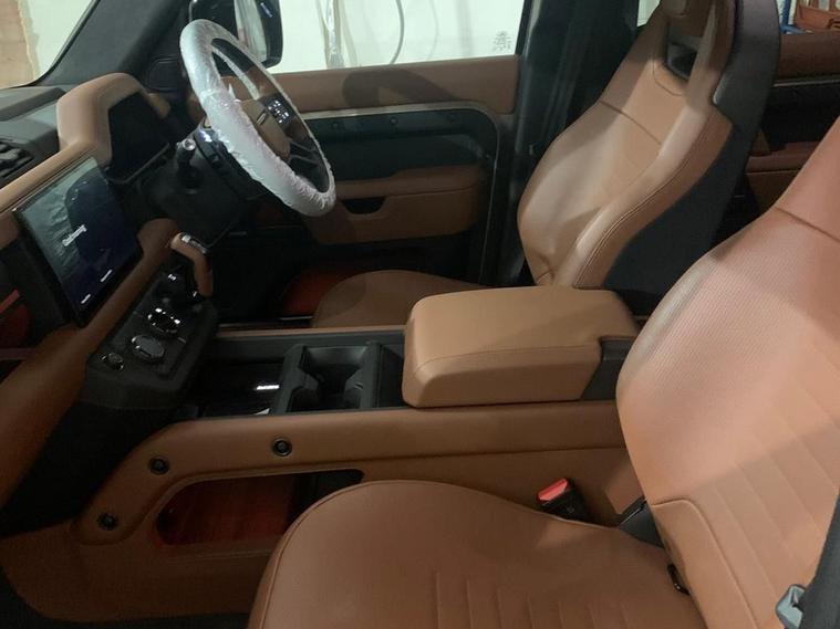 2025 Land Rover Defender 4.4 P635 Octa 110 5dr Auto for sale for £129, 995: 12V power socket in loadspace, 14 way heated and cooled electric memory performance front seats, 3 seat bench in 2nd row, 40:20:40 folding, heated rear seats with centre armrest, Air quality sensor, Alpine lights, Body and soul seat, Bright metal pedals, Domestic plug socket, Durable rubber cabin flooring, Durable rubber loadspace flooring, Edge illuminated paddle shifters, Electric cabin pre conditioning, Electric reach + rake adjustable steering column, Electrically adjustable steering column, Footwell lights, Front centre console refrigerator compartment, Front head restraints, Front passenger isofix child seat attachment, Heated steering wheel, Loadspace cover, Loadspace Hook, Multifunction steering wheel, No flat load floor storage, Overhead stowage for sunglasses, Rear headrests, Rear ISOFIX, Rear reading lights, Signature carpet mats, Signature interior upgrade, Single front passenger seat, Soft close tail door, Standard seat configuration, Storage glovebox, Sunvisors with illuminated vanity mirrors, Three-zone Climate Control with Rear Cooling Assist, Twin front cupholders, 11.4 touchscreen, 360 degree parking aid, 3D Surround Camera with 360 View, 180 Rear View, Front Traffic Detection, Forward Vehicle Guidance, Tow Hitch Assist and clear sight Ground View, Adaptive cruise control, Android Auto, Apple CarPlay, Blind spot assist, Bluetooth system, Brake pad wear indicator, Clear exit monitor, Configurable programs, Connected navigation pro, Driver condition monitor, Electric power assisted steering (EPAS), Garage door opener (Homelink), Head up Display, Interactive driver display, Lane keep assist, Push button start, Rear collision monitor, Rear traffic monitor, Traffic sign recognition with adaptive speed limiter, DAB Radio (Digital Audio Broadcasting), Meridian 700w surround sound audio system with 15 speakers, Pivi pro connected, Non-smoker package, Online pack with data plan - Defender, Satin moonlight exterior pack - Defender, Advanced tow assist, Automatic headlight levelling, Automatic headlights, Black contrast roof, Black contrast tail door, ClearSight interior rear view mirror, Darkened LED tail lights, Electric heated/power fold door mirrors with approach lights and auto dimming driver side, Electric windows with one touch open/close and anti-trap, Follow me home lighting, Front fog lights, Graphite front undershield, Headlamp power wash, Heated rear window with timer, Heated washer jets, Heated windscreen, Illuminated metal treadplates with brand name script, LED 3rd brake light, Matrix LED headlights with signature DRL, Octa badge, Phosphor bronze exposed rear recovery eyes, Privacy glass, Puddle lights, Rain sensing windscreen wipers, Rear fog lights, Rear side wing doors, Rear wiper, Satin black exhaust finisher, Side hinged tailgate, Signature graphic (with interior storage), Sliding panoramic roof,