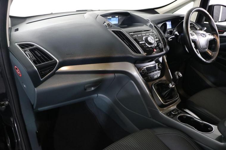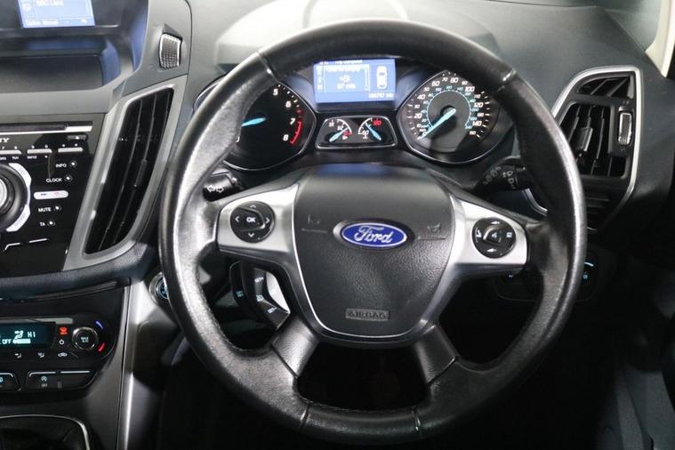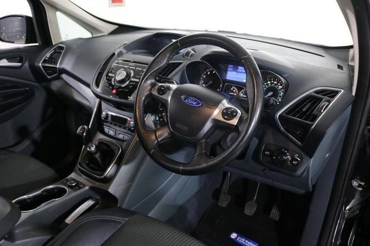 This well maintained Ford C-Max Titanium X finished in Panther Black looks fantastic complemented by 17 inch Alloy Wheels. Enjoy economical motoring with JUST £35 ROAD TAX and up to 62 MPG. Well equipped with PANORAMIC GLASS SUNROOF with Electric Blind. Sit in luxury with 1/2 LEATHER Upholstery with HEATED FRONT SEATS. Keep connected with integrated BLUETOOTH Phone System. Listen to your music through DAB Digital Radio. Comfortable to drive with Dual-Zone CLIMATE CONTROLLED AIR CONDITIONING and CRUISE CONTROL with Speed Limiting Function. Well equipped with Power-Fold Door Mirror, Auto Bi-XENON Headlights and Rain-Activated Wipers. Also fitted with ISOFIX seats, Space Saver Spare Wheel, Multifunctional Steering Wheel, Alarm and Remote Door Locking with 2 x keys. Buy in confidence with 11 x Documented Services.
