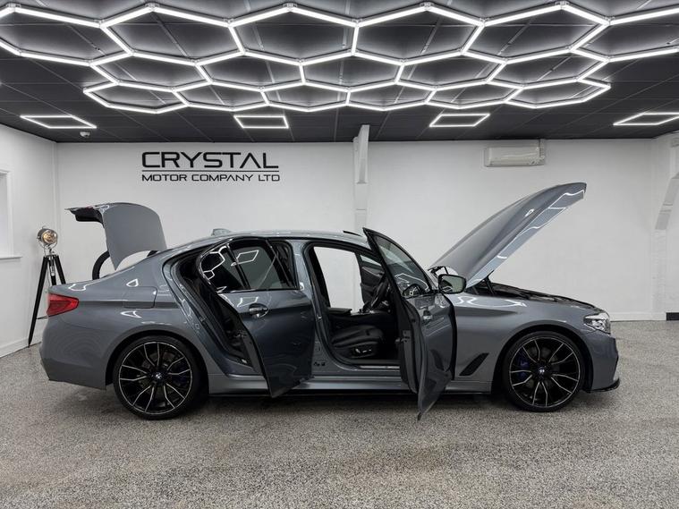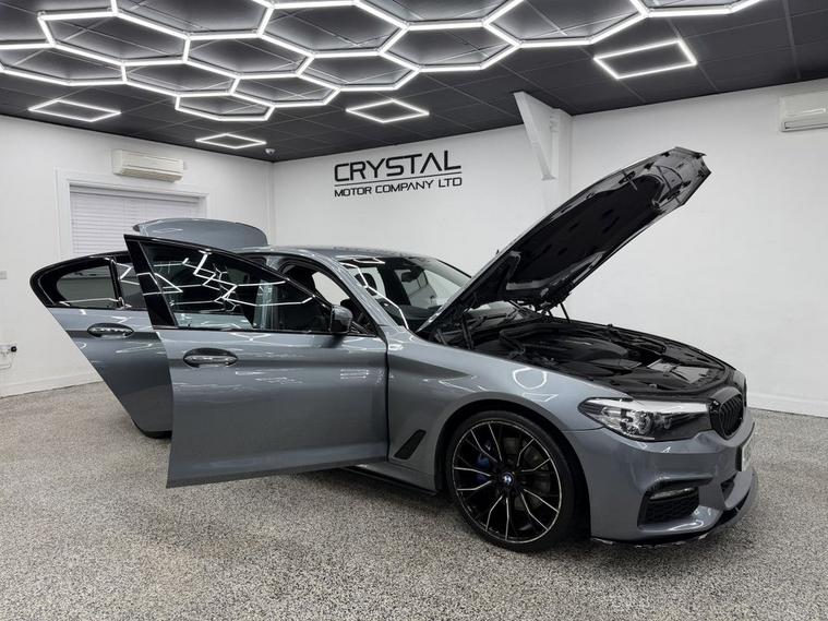 Crystal motor company are delighted to offer for sale this beautifully presented 2017 BMW 5 SERIES 2.0 530i M Sport Saloon 4dr Petrol Auto Euro 6 (s/s) (252 ps) finished in BLUESTONE. This car comes with TWO KEYS, ONE FORMER KEEPER, SERVICE HISTORY. This car is equipped with 20 ALLOY WHEELS, BLUE BRAKE CALLIPERS, FRONT AND REAR PARKING SENSORS, REAR REVERSING CAMERA, LED HEADLIGHTS, EXCLUSIVE LEATHER SEATS, ELECTRIC FRONT SEATS, MEMORY FRONT SEATS, HEATED FRONT SEATS, PADDLE SHIFT, CRUISE CONTROL, VIRTUAL COCKPIT, HEADS UP DISPLAY, AMBIENT LIGHTING (6 COLOUR CHOICE), DAB RADIO, BLUETOOTH AUDIO, BLUETOOTH PHONE CONNECTION, SATNAV. The car is 100% HPi clear. Part exchange and finance are available and all major credit and debit cards accepted. Crystal Motor Company Ltd Used Programme includes a full PDI inside and out, MOT, mileage certificate and a full inside and out valet. You can request a personalised video with attention given to any specifics you would like a better view of and we will be pleased to assist you. Likewise, we offer our customers a free collection service. Our journey began in 1996 with the aim to deliver the best possible customer experience, you will enjoy a completely hassle free approach, no pressure and great prices, values we stand by to this day. Looking to finance your next car? We have over 30 lenders on board to help each customer with their financial circumstance. Every vehicle benefits from a minimum of 3 months warranty with the option to extend to 6/12/24/36 months.