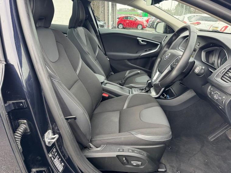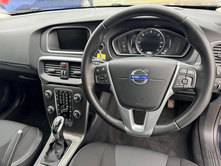 ** UNBELIEVABLE SPEC LEVEL ** One of a Kind Volvo V40 2.0 D2 SE AUTO finished in Blue paint with upgraded 17inch Alloys. 2 owners from new, Volvo supplying dealer for 6 months and Frank for the past 10 years. FULL VOLVO SERVICE HISTORY - 9 Volvo services on record with the most recent at 42, 000 miles. Only £20 year tax banding and 70MPG+ fuel economy. Optional Volvo upgrades of £5000 consist of the fixed panoramic sunroof (£1000), Electric front seats (£500), Blind spot alert system (£500), rear parking camera (£375), Park Assist Pilot (£850) to name a few. Standard spec includes SAT NAV, Bluetooth, Power folding electric wing mirrors, heated front seats, DAB radio, auto headlights, Climate control with A/C, multi-function steering wheel with audio controls, trip computer and cruise control, auto headlights and much much more. Call 01138032273 or visit dealer's website