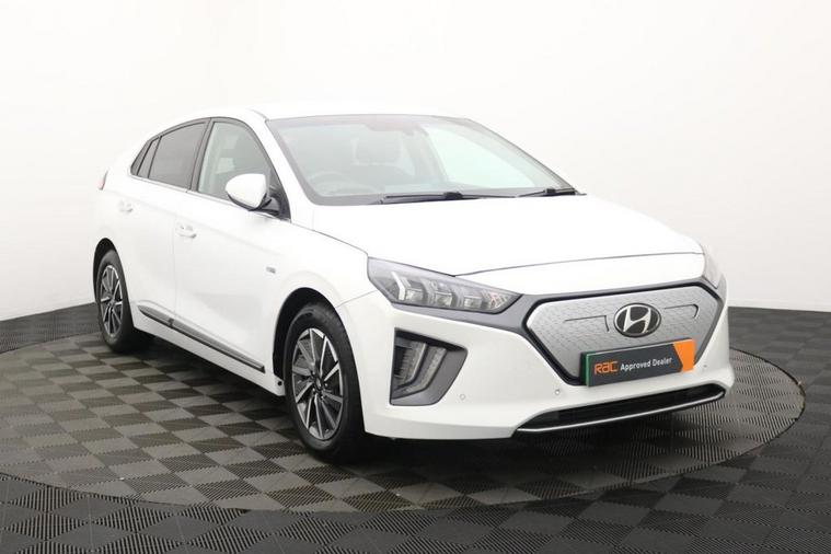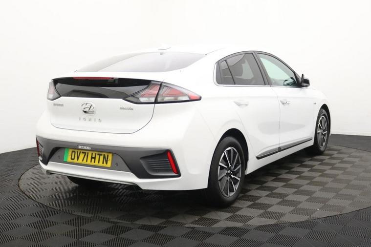 Henson Car Store presents the HYUNDAI IONIQ 38.3kWh Premium SE Hatchback 5dr Electric Auto (136 ps) finished in White. Discover this 2021 Hyundai IONIQ Premium SE, an electric vehicle designed for efficient and enjoyable journeys. With a substantial 43 kWh battery, this IONIQ offers a maximum range of 193 miles when new, making it a practical choice for both daily commutes and longer trips. Charging is convenient, with a full charge at home using a 7kW charger taking approximately 6 hours and 5 minutes, and rapid public charging from empty to 80% achievable in just 54 minutes. The Premium SE trim level ensures a well equipped experience, and youll appreciate the generous boot space, offering ample room for luggage, shopping, or sports equipment. This Hyundai IONIQ stands out with its impressive electric range and swift charging capabilities, providing a compelling alternative to traditional petrol or diesel cars. Its electric powertrain delivers a smooth and quiet driving experience, contributing to lower running costs and a reduced environmental impact. Stock Number 076
