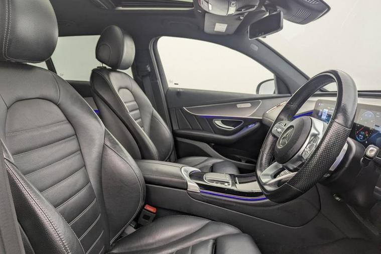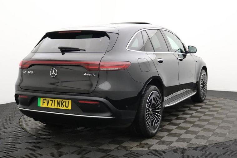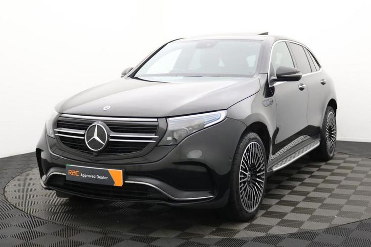 This 2021 Mercedes Benz EQC 400 AMG Line (Premium) has been cherished by just one owner since new, offering a superb example of this premium electric SUV. As a fully electric vehicle with Four Wheel Drive, it combines advanced technology with impressive performance. The EQC 400 AMG Line (Premium) boasts a substantial 88 kWh battery, providing a maximum range of 245 miles when new. Charging is convenient, with a full charge at home taking approximately 12 hours and 13 minutes using a 7kW charger, while rapid public charging can replenish the battery from empty to 80% in as little as 45 minutes. Notable features include the sophisticated MULTIBEAM LED Headlights, an Electric Sliding Sunroof, and a comprehensive Parking Package with Parking Assist PARKTRONIC and a Rear Camera for effortless manoeuvring. Inside, you will appreciate the comfort of Heated Front Seats and the added safety of Blind Spot Assist. The driving experience of this EQC is further enhanced by its brisk acceleration, reaching 0-60mph in a swift 5.1 seconds, demonstrating its electric power. This performance, combined with its spacious boot, sets it apart from many other vehicles in its class. The AMG Line trim ensures a sporty aesthetic and feel, while the Premium designation signifies a high level of standard equipment. This Mercedes Benz EQC represents a compelling choice for those seeking an electric SUV that delivers on style, technology, and driving pleasure.