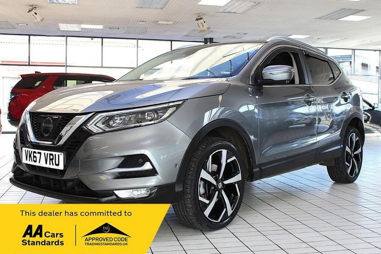 NISSAN QASHQAI 1.5 DCI TEKNA 5DR FINISHED IN GUN METALLIC GREY AND COMPLIMENTED WITH PART BLACK LEATHER INTERIOR, THIS VEHICLE HAS BEEN VERY WELL CARED FOR AND MAINTAINED WITH DOCUMENTED SERVICE HISTORY CARRIED OUT AT 10800, 20093, 34973, 42583, 51999 PLUS COMPREHENSIVE PRE DELIVERY HEALTH CHECK AND SERVICE COMPLETED PRIOR TO SALE AT 67628 MILES. KEY FEATURES INCLUDE ALLOY WHEELS, COLOUR DISPLAY, AMBIENT LIGHTING, CD PLAYER, AUTOMATIC WIPERS, BLUETOOTH, BOSE SOUND SYSTEM, CRUISE CONTROL WITH SPEED LIMITER, DAB RADIO, DUAL ZONE CLIMATE CONTROL, ELECTRIC FOLDING DOOR MIRRORS, AUTOMATIC HEADLIGHTS, HEAT PACK, INTELLIGENT KEY, PARK ASSIST, LANE ASSIST, IMMOBILISER, NISSAN CONNECT EVO TOUCHSCREEN SATALLITE NAVIGATION AND ENTERTAINMENT SYSTEM, FRONT AND REAR PARKING SENSORS WITH REAR VIEW CAMERA, SMARTPHONE INTEGRATION, STEERING WHEEL MOUNTED AUDIO CONTROLS, ALARM, USB PORT PLUS MUCH MORE. COMMITTED TO AA CARS STANDARDS: 3 MONTHS OR 3000 MILES WARRANTY INCLUDED WITH AN OPTION TO UPGRADE: 12 MONTHS AA BREAKDOWN RECOVERY INCLUDED: £75.00 CONTRIBUTION TOWARDS YOUR NEXT SERVICE/MOT AT ANY AA CARS STANDARD APPROVED WORKSHOP: WE STAND BY THE QUALITY OF OUR VEHICLES. WITH THE PURCHASE OF THIS VEHICLE, YOU WILL RECEIVE 3 MONTHS OR 3000 WARRANTY, 12 MONTHS AA BREAKDOWN RECOVERY, GIVING YOU ADDITIONAL PEACE OF MIND AND PROTECTION. ALL OUR CARS COME WITH AT LEAST 6 MONTHS MOT AND PRE SALE HEALTH CHECK AND ROAD TEST. OUR PROFESSIONAL TEAM ENSURES YOUR VEHICLE STAYS IN TOP CONDITION, AND YOU ENJOY A HASSLE-FREE OWNERSHIP EXPERIENCE. 4.7 STARS ON GOOGLE WITH OVER 550 REVIEWS: JOIN OUR COMMUNITY OF SATISFIED CUSTOMERS! OUR DEALERSHIP IS PROUD TO HAVE A 4.7 STAR RATING ON GOOGLE, BACKED BY OVER 550 POSITIVE REVIEWS. WE ARE COMMITTED TO PROVIDING EXCELLENT SERVICE AND HIGH-QUALITY VEHICLES. This Vehicle Comes Equipped with High Specification, Which Includes: -