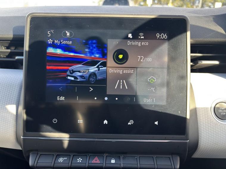 This 2022 Renault Clio TCe SE Edition is a superb example, having had only one owner since new. This stylish hatchback is powered by an efficient 1.0 litre petrol engine, meeting Euro 6 emissions standards. It comes equipped with full LED front and rear headlamps that incorporate distinctive daytime running lights, enhancing both visibility and the cars modern appearance. Convenience is key with the handsfree keycard, allowing for push button start stop and keyless entry. Inside, youll find automatic climate control to keep you comfortable in all conditions, and a handy wireless charging pad for your smartphone. For easier manoeuvring, a rear view camera is also included. The Clio TCe SE Edition offers excellent running costs, boasting an impressive fuel economy of 53 miles per gallon, which is a highlight that sets it apart from many other vehicles in its class. Furthermore, its low CO2 emissions contribute to a more environmentally conscious drive. This combination of efficient performance, desirable features, and excellent provenance makes this 2022 Renault Clio a compelling choice for anyone seeking a well maintained and economical hatchback.