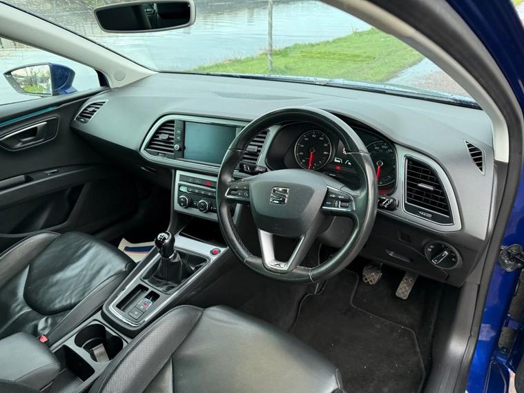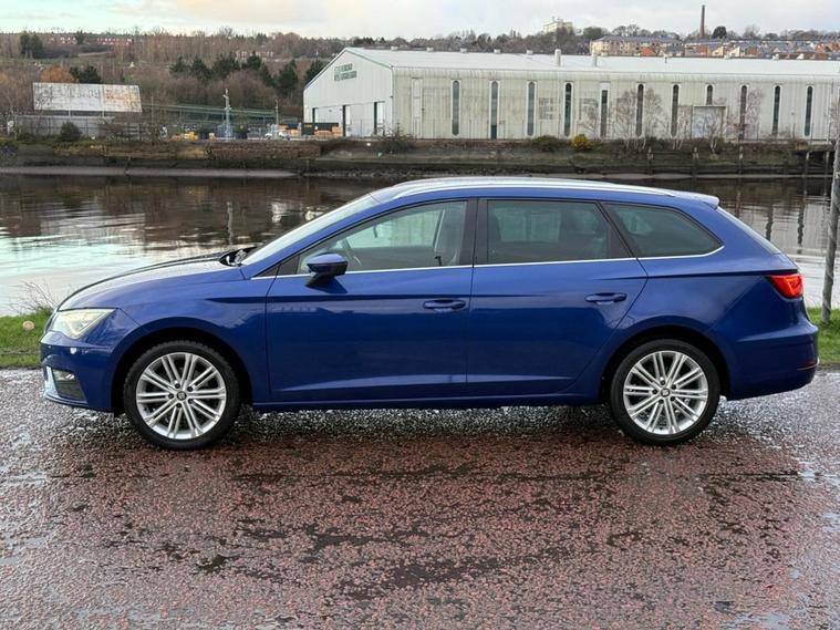 STUNNING SEAT LEON 1.5 TSI XCELLENCE ST IN MYSTERY BLUE METALLIC, THIS CAR COMES WITH SOME LOVELY SPEC INCLUDING PRIVACY GLASS, CHROME TRIM, 17 ALLOY WHEELS, FULL BLACK LEATHER INTERIOR, HEATED SEATS, DUAL AIR CON, FRONT + REAR SENSORS, REVERSING CAMERA, SAT NAV, DAB, BLUETOOTH, MULTI FUNCTIONING STEERING WHEEL, CRUISE CONTROL, WIRELESS CHARGING AND LOTS MOTE, WE WILL ALSO PROVIDE YOU WITH A FRESH SERVICE, MOT AND WARRANTY.
