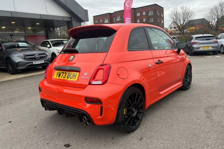 This 2023 Abarth 695 T-Jet offers exceptional peace of mind with its MOT valid until December 2026. This Euro 6 compliant 1.4L petrol engine model is equipped with rear parking sensors to assist with manoeuvring, and automatic climate control to ensure a comfortable cabin temperature. Entertainment and navigation are seamlessly integrated through the Uconnect 7in touchscreen, featuring DAB radio, Bluetooth, USB, and Aux connectivity, along with Apple CarPlay and Android Auto compatibility. Further enhancing convenience, rain and dusk sensors automatically activate the headlights. Experience exhilarating performance with this Abarth 695, capable of accelerating from 0 to 60mph in just 6.9 seconds. This impressive acceleration highlights its dynamic capabilities, setting it apart from many other vehicles in its class. The inclusion of features like automatic climate control and advanced infotainment further demonstrates its superior comfort and connectivity, making every journey enjoyable.