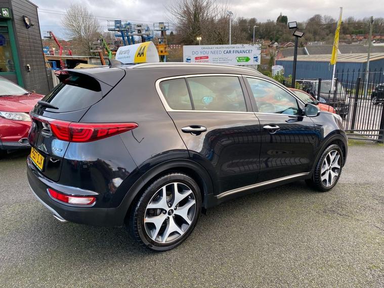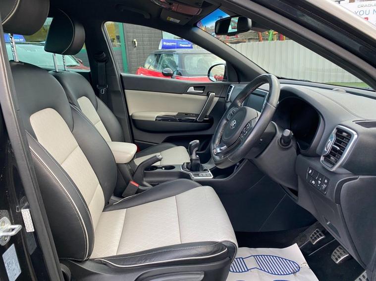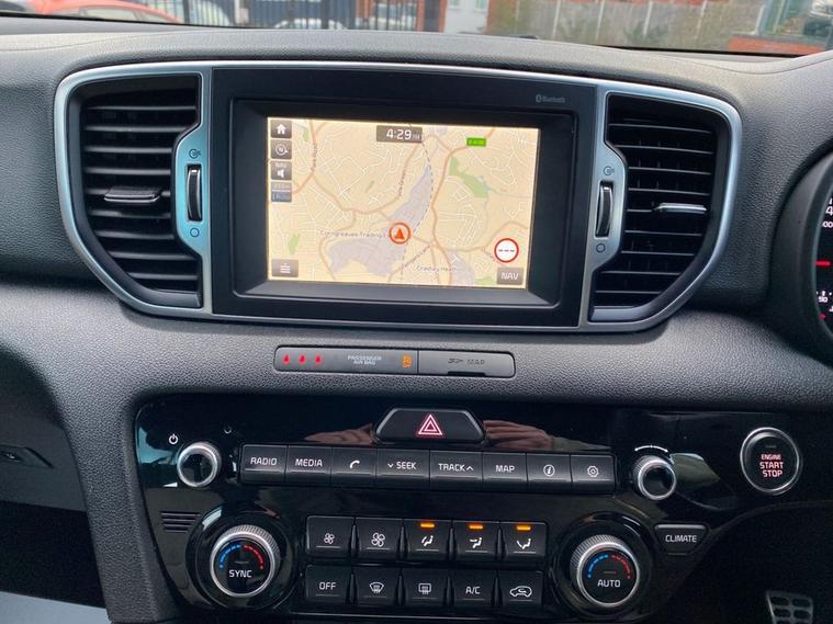 The Kia Sportage T-GDi GT-Line is a 2017 model that boasts a 1.6L Petrol Engine, meeting the stringent Euro 6 emission standards. This trim level is equipped with a range of impressive features, including Dual Automatic Air Conditioning with Climate Control, ensuring a comfortable driving experience in any weather. The GT-Line also comes with Automatic Headlight Control, which adjusts the headlights to suit the driving conditions, and Heated Front and Outer Rear Seats for added comfort. For connectivity, Apple CarPlay and Android Auto are integrated, allowing seamless integration with your smartphone. Additionally, the vehicle is equipped with Front Parking Sensors, providing an extra layer of assistance when navigating tight spaces. This Kia Sportage T-GDi GT-Line is a great option for those looking for a reliable and feature-packed vehicle. With a very low mileage of just 41, 000 miles, you can be confident in the vehicles condition. The GT-Line trim also benefits from a low insurance group, making it an attractive choice for those on a budget. Furthermore, its 1.6L Petrol Engine accelerates from 0-60mph in a respectable 8.9 seconds, making it a capable and responsive drive. Overall, this Kia Sportage T-GDi GT-Line is a well-equipped and efficient vehicle that offers a great balance of performance and practicality.