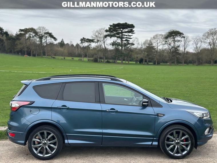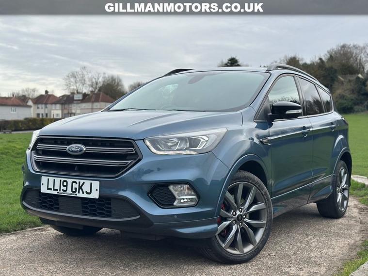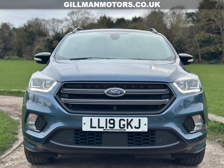 FORD KUGA 1.5T EcoBoost ST-Line Edition SUV 5dr finished in blue. This sporty and well-equipped SUV is powered by a responsive 150ps 1.5 EcoBoost petrol engine with manual gearbox, offering an engaging yet efficient drive. Euro 6 (s/s) compliant. ST-Line Edition model featuring opening panoramic roof, front and rear parking sensors, keyless entry and go, LED headlights, touchscreen DAB radio with navigation, and cruise control. A stylish and practical SUV combining performance, comfort and modern technology. Viewing and test drives welcome.