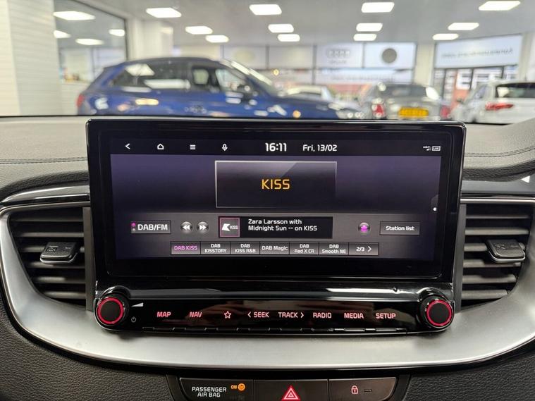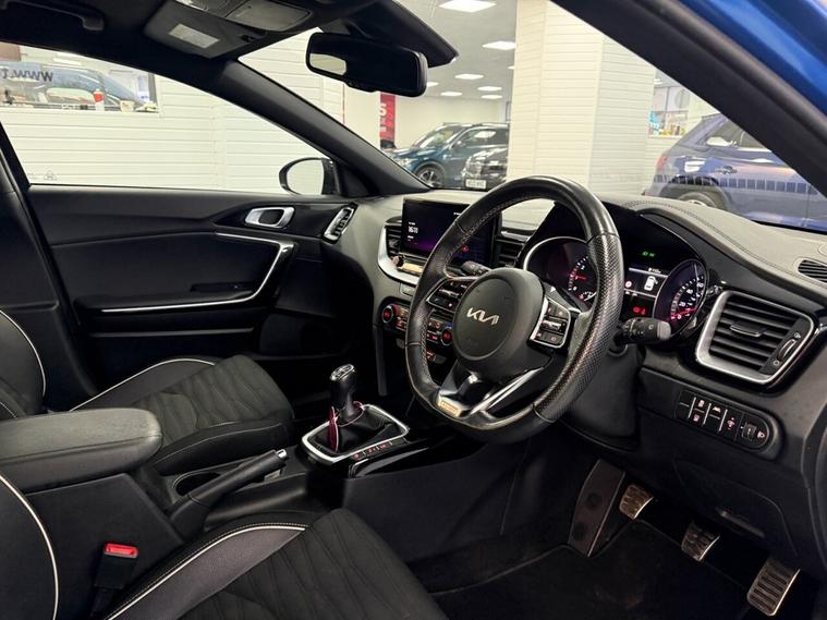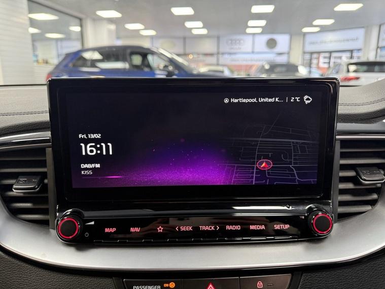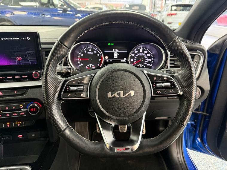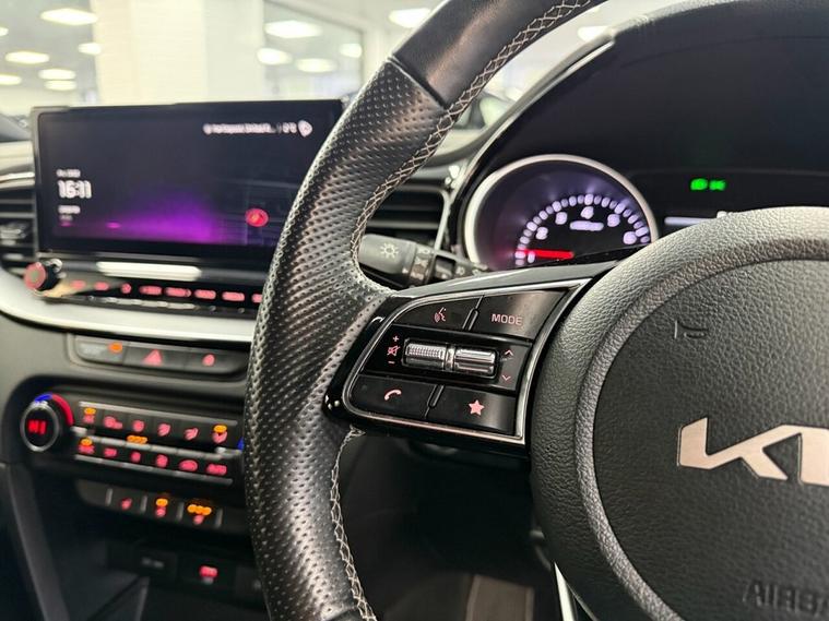 This 2022 Kia Ceed T GDi GT Line presents an exceptional opportunity with its remarkably low mileage of just 28027 miles for its age. This Euro 6 compliant petrol model boasts a responsive 1.5 litre engine, offering an engaging 0-60mph time of 8.4 seconds. Inside, youll find comfort and convenience with heated front seats and dual automatic air conditioning, ensuring a pleasant driving experience in any weather. Connectivity is seamless thanks to Apple CarPlay and Android Auto, both featuring voice control, allowing you to stay connected and entertained on the go. The GT Line trim level enhances the already impressive Ceed, and this particular vehicle is further distinguished by its generous boot space, making it ideal for families or those who need ample room for luggage. Rear parking sensors provide added peace of mind when manoeuvring, simplifying everyday tasks. These features, combined with the efficient engine and low mileage, position this Kia Ceed as a standout choice compared to other vehicles in its class, offering a blend of performance, practicality, and modern technology.