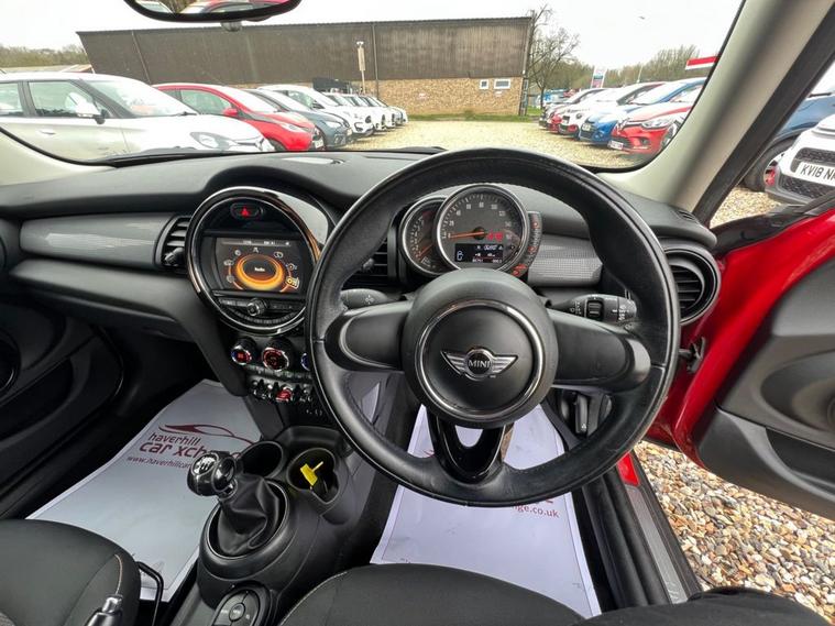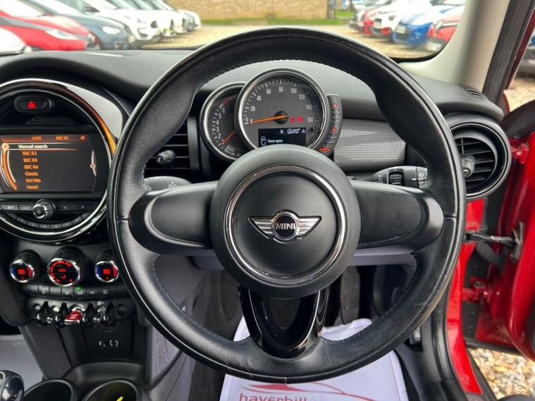 ONLY £20 A YEAR ROAD TAX+LONG MOT UNTIL 16.01.2027+£2, 720 OF FEATURES WHICH INCLUDE PEPPER PACK+RADIO-BLUETOOTH+AUTOMATIC DUAL ZONE AIR-CONDITIONING+AUTOMATIC HEADLIGHT ACTIVATION+RAIN-SENSING WINDSCREEN WIPERS+3-SPOKE LEATHER STEERING WHEEL+SEMI-METALLIC BLAZING RED PAINT WHITE ROOF AND MIRROR CAPS. At Haverhill Car Xchange we would like to offer you our Mini Hatch Cooper Hatchback which has been finished in a semi-Metallic Blazing Red paint, White Roof and Mirror Caps with Carbon Black Firework cloth upholstery. Specification Includes Pepper Pack, Visual Boost DAB Radio- USB Interface, Automatic Dual Zone Climate Control Air-Conditioning, Start-Stop Button with Keyless Start, Electric Windows with One-Touch Up-Down in the Front and Rear, Body Coloured Bumpers, Chrome Door Handles and Radiator Grille, White Roof-Door Mirrors-Roof and Rear Roof Spoiler, Automatic Headlight Activation, Daytime Driving Lights, Headlights with Follow-Me-Home Function, Front Fog Lights, Rain-Sensing Windscreen Wipers, 3-Spoke Leather Steering Wheel, Power Steering, Hill Assist, Airbags, Alarm, Immobiliser and Remote Central Locking.