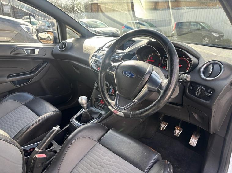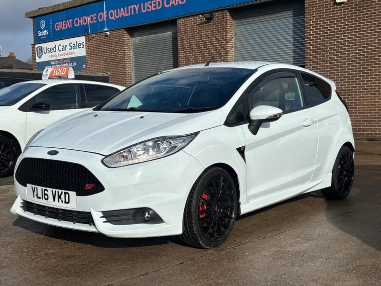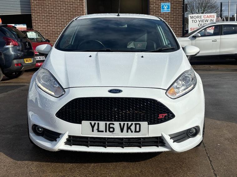 Scotts of Leeds used Car Sales are pleased to offer this FORD FIESTA 1.6T EcoBoost ST-2 Hatchback 3 Door Petrol Manual White. The car is in good condition throughout, in the best colour combination and a great specification including DAB radio, Bluetooth, AUX and USB point, Heated half leather seats, privacy glass, CD player, isofix, alloy wheels, Electric windows, and much much more. The car will be supplied with an up to date service record including 6 services having just been serviced in our Workshop, an MOT until January 2027 and 2 Keys ready to drive away. 3 MONTH NATIONWIDE WARRANTY provided with all vehicles. NATIONWIDE DELIVERY also available. A guaranteed 12 Months MOT can be added for an extra £100. DISCLAIMER: The above specification is true and correct. Any other specification listed elsewhere can sometimes be incorrect. Please check with Sales Executive to clarify this if needed prior to purchase.