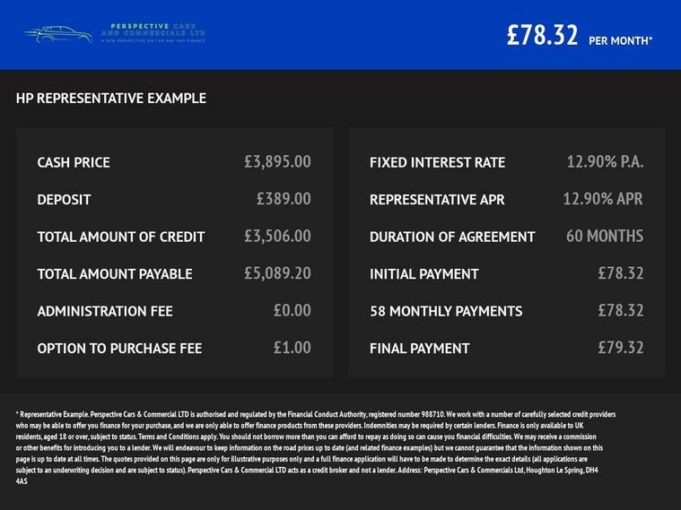 2 owners, 2 keys, 7 services Welcome to Perspective Where Your Next Car Comes with Peace of Mind At Perspective, we put your experience first. Every vehicle is price-checked daily to ensure youre getting a competitive deal. For your peace of mind, all our cars come with: ?? 12 months MOT ?? A fresh service ?? 3 months of comprehensive warranty ??12 months free AA breakdown cover We also offer free delivery within 50 miles, and UK-wide delivery is available. Need finance? No problem. We specialise in car finance and work with a trusted panel of lenders to help you find the right dealwhatever your credit history. We even offer zero deposit options to get you on the road sooner. No pressure. Just great cars, great service, and great value