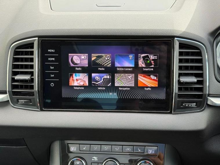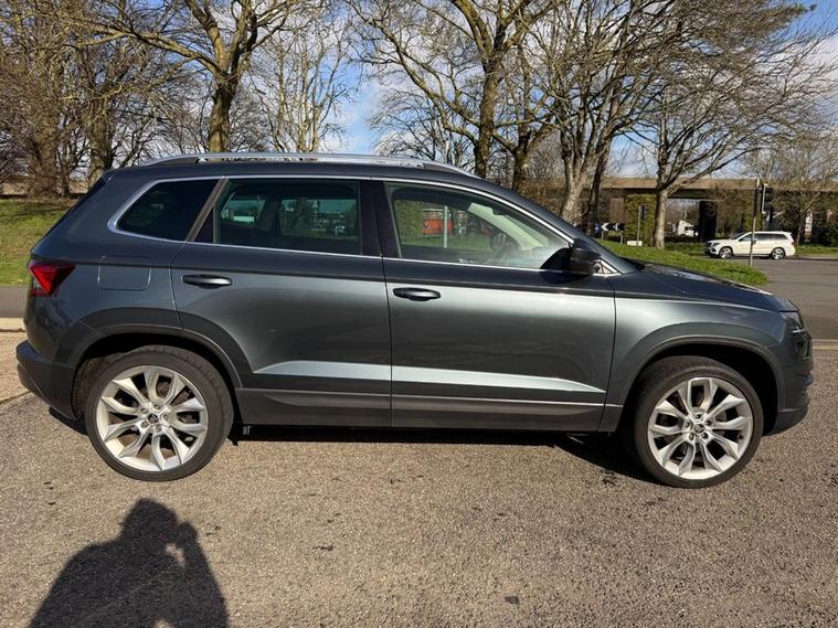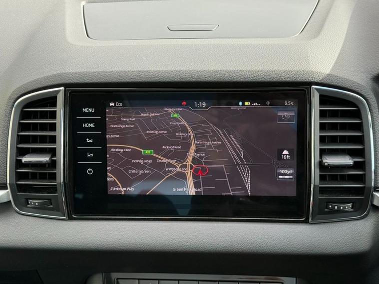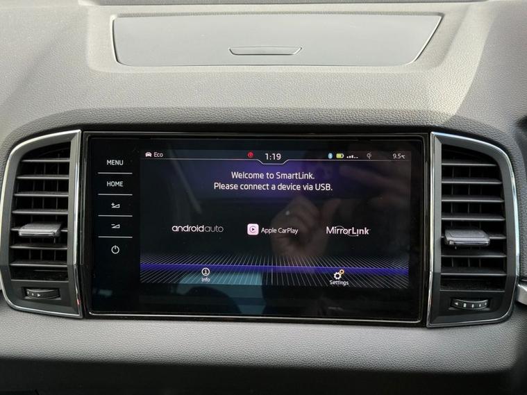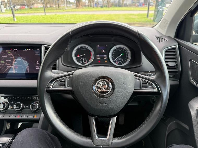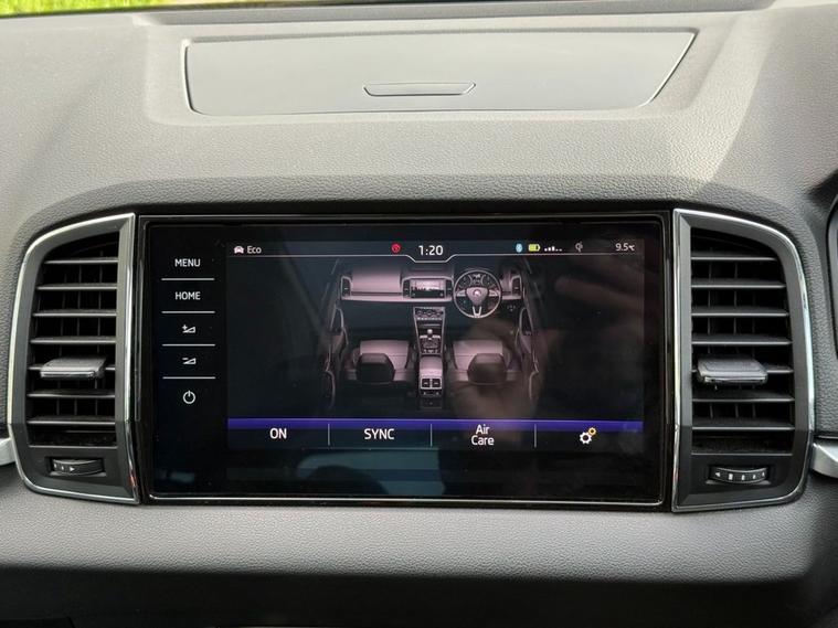 The Skoda Karoq TSI Edition is a 2018 model that boasts a 1.5L Petrol Engine, meeting the stringent Euro 6 emission standards. This vehicle has undergone a thorough vehicle history check, which has confirmed its clear ownership record. The Karoq TSI Edition is equipped with a range of impressive features, including parking sensors at the front and rear, complete with parking assistance systems to make navigating tight spaces a breeze. A rear view camera is also on hand to provide an added layer of convenience. The Edition trim level is complemented by full LED headlights with adaptive front lighting and LED daytime running lights, ensuring optimal visibility on the road. Inside, the drivers seat is electrically operated and features a memory function, while a panoramic sunroof adds a touch of luxury to the cabin. The Skoda Karoq TSI Edition is a standout choice in its class, with impressive fuel economy of up to 50 mpg making it an economical option for daily driving. Its low insurance group rating also makes it an attractive choice for those looking to keep costs down. Furthermore, its low CO2 emissions make it a more environmentally friendly option. With a 0-60mph time of just 8.3 seconds, this vehicle is also quick off the mark, making it a great all-rounder. Whether youre looking for a practical and efficient vehicle or one thats fun to drive, the Skoda Karoq TSI Edition is certainly worth considering.