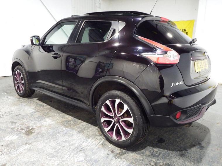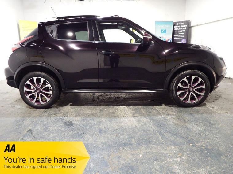We are pleased to be able to offer this NISSAN JUKE 1.2 DIG-T Tekna SUV 5dr Petrol Manual Euro 6 (s/s) (115 ps) finished in Flame Red with the Contrasting Black Leather seats.....The car has a great service history having been serviced 7 times and is also accompanied by 2 keys......The car is packed with specification that includes the very rare option of the Factory Fitted Electric Sunroof, 17 Alloy Wheels, Black Heated Leather Seats, Satelitte Navigation, Bluetooth, 360 Degree Parking Cameras, DAB Digital Radio, Cruise Control, Climate Control, Privacy Glass, Lane Departure System, Power Folding Mirrors plus many more features. Actual miles 89702