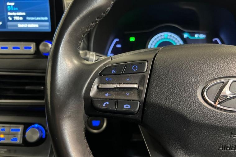 With an MOT valid until October 2026 and a clear vehicle history check, this 2020 Hyundai KONA Premium Electric offers excellent peace of mind. This well maintained example has covered a low mileage of just 31865 miles for its age. It boasts a substantial 68 kWh battery, providing a maximum range of 279 miles when new, making it ideal for both daily commutes and longer journeys. Notable features include a Blind Spot Detection System with Blind Spot Assistance, automatic headlights with a dusk sensor, and a rear camera with guidance alongside front and rear parking sensors for effortless manoeuvring. Youll also appreciate the convenience of a wireless phone charging pad. The Hyundai KONA Premium Electric stands out with its impressive battery capacity and range, indicating superior performance compared to many other electric vehicles. The 68 kWh battery allows for a maximum range of 279 miles from new, a significant advantage for drivers seeking fewer charging stops. When you do need to recharge, a full charge at home using a 7kW charger takes approximately 9 hours and 35 minutes, while rapid public charging can take you from empty to 80% in just 53 minutes. These charging times and the extensive range highlight the KONAs practicality and efficiency in the electric vehicle market.