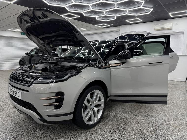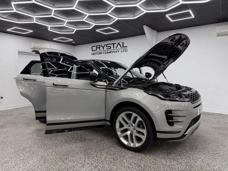 Crystal motor company are delighted to offer for sale this beautifully presented 2019 LAND ROVER RANGE ROVER EVOQUE 2.0 P250 MHEV First Edition SUV 5dr Petrol Auto 4WD Euro 6 (s/s) (249 ps) finished in SEOUL PEARL SILVER. This car comes with TWO KEYS, TWO FORMER KEEPERS, LAND ROVER SERVICE HISTORY. This car is equipped with 21 ALLOY WHEELS, FRONT AND REAR PARKING SENSORS, REAR REVERSING CAMERA, ELECTRIC REAR TAILGATE, ELECTRIC FOLDING WING MIRRORS, BLIND SPOT ASSIST, LED MATRIX HEADLIGHTS, FIXED PANORAMIC ROOF, TWO TONE LEATHER INTERIOR, ELECTRIC MEMORY FRONT SEATS, HEATED FRONT SEATS, HEATED STEERING WHEEL, ADAPTIVE CRUISE CONTROL, VIRTUAL COCKPIT, HEADS UP DISPLAY, MERIDIAN SOUND SYSTEM, AMBIENT LIGHTING (10 COLOUR CHOICE), CLEARSIGHT INTERIOR MIRROR, DAB RADIO, BLUETOOTH AUDIO, BLUETOOTH PHONE CONNECTION, SATNAV, APPLE CARPLAY, ANDROID AUTO. The car is 100% HPi clear. Part exchange and finance are available and all major credit and debit cards accepted. Crystal Motor Company Ltd Used Programme includes a full PDI inside and out, MOT, mileage certificate and a full inside and out valet. You can request a personalised video with attention given to any specifics you would like a better view of and we will be pleased to assist you. Likewise, we offer our customers a free collection service. Our journey began in 1996 with the aim to deliver the best possible customer experience, you will enjoy a completely hassle free approach, no pressure and great prices, values we stand by to this day. Looking to finance your next car? We have over 30 lenders on board to help each customer with their financial circumstance. Every vehicle benefits from a minimum of 3 months warranty with the option to extend to 6/12/24/36 months.