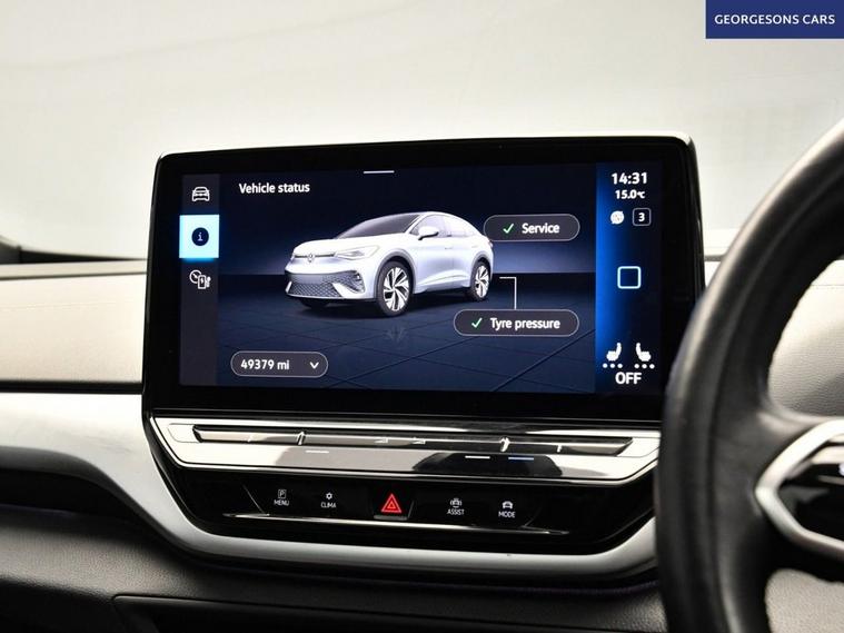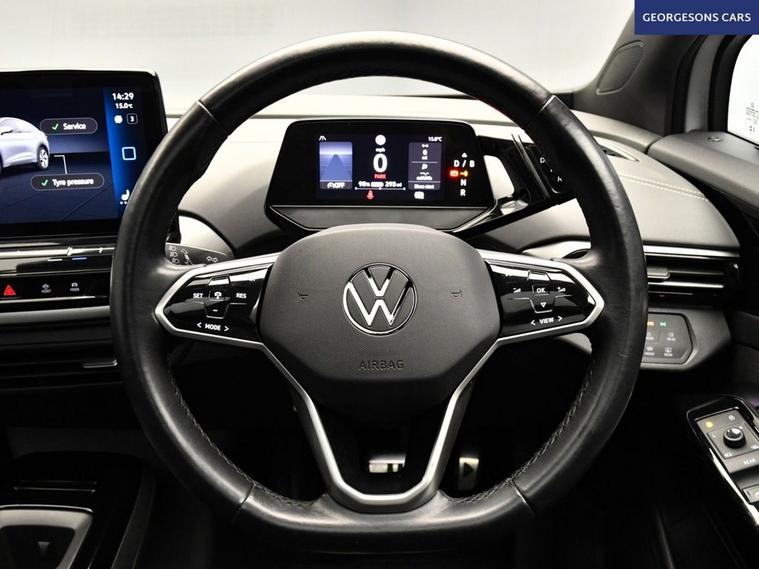 The Volkswagen ID.5 Pro Performance 77kWh Style combines a powerful electric motor with 286hp, delivering 0-62mph in 6.3 seconds and up to 323 miles WLTP range in this rear-wheel-drive setup with a smooth single-speed automatic transmission. The Style trim offers elegant coupe-SUV styling with a premium interior. With one owner, this ID.5 is in excellent condition. Enjoy the expansive panoramic glass roof for an airy cabin feel, while integrated satellite navigation, Apple CarPlay, Bluetooth and DAB radio ensure seamless connectivity. Parking is a breeze thanks to the reverse camera and parking sensors. Stay comfortable with dual-zone climate control, heated front seats and heated steering wheel. Adaptive cruise control and lane assist enhance safety and relaxation on motorways. The stylish five-door coupe-SUV includes a 549-litre boot for practicality.