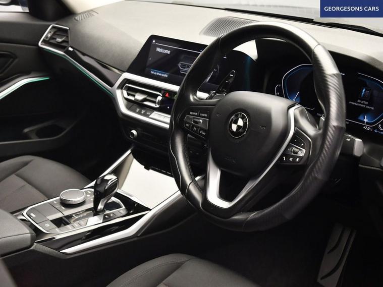 The BMW 3 Series 330e SE Pro combines a responsive 2.0-litre turbo petrol engine with an electric motor for a total 292hp, delivering 0-62mph in 5.9 seconds, up to 37 miles pure-electric range and an official 188mpg in this rear-wheel-drive setup with a smooth 8-speed automatic transmission. The SE Pro trim offers premium everyday luxury with a high-grade interior. Ambient lighting creates a sophisticated cabin atmosphere, while integrated satellite navigation, Apple CarPlay, Bluetooth and DAB radio ensure seamless connectivity on every journey. Parking is a breeze thanks to the reverse camera, parking sensors and park assist, providing clear visibility and confidence in tight spaces. Stay comfortable with dual-zone climate control, offering personalised cooling year-round. Cruise control with speed limiter and hill assist enhance safety and relaxation on highways. Push-button start adds daily convenience.