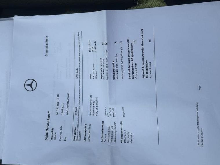 This 2015 Mercedes Benz M Class ML350 V6 AMG Line boasts a remarkable provenance, having been owned by only two previous keepers. Under the bonnet, a powerful 3.0L Diesel engine paired with a Four Wheel Drive system ensures confident performance in all conditions. This Euro 6 compliant vehicle is equipped with the desirable AMG Line trim, featuring Bi-Xenon headlights with automatic activation, a Bluetooth interface for hands-free calls, and heated front seats for added comfort. The ML350 V6 AMG Line offers impressive practicality, highlighted by its generous boot space, perfect for luggage or shopping. Its acceleration from 0-60mph in just 7.4 seconds demonstrates its capability, a performance metric that sets it apart from many similar vehicles. Furthermore, the inclusion of Automatic Climate Control ensures a pleasant cabin environment for all occupants, while its substantial towing weight of 3500 kg makes it a versatile choice for those needing to tow. Very low mileage only 148, 000 MILES 100% guaranteed and HPI clear. Full service history invoice. The road tax is only £395 a year. Great on fuel doing an average of 28 miles to the gallon. One former keeper. Being an AA approved dealer we have an independent AA inspector come in and carry out a 128 point check on the car. We supply a fantastic sales package with the vehicle which includes 12 months MOT, an essential service, 3 months warranty and 12 months breakdown cover. With brilliant reviews and a 5 ramp workshop behind us, you can buy with peace of mind. We are open 08:30 to 17:00 Monday to Friday and 09:00 to 16:00 Saturday. Call 01842232473 to arrange a viewing and test drive