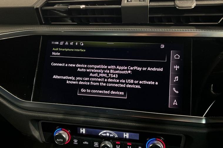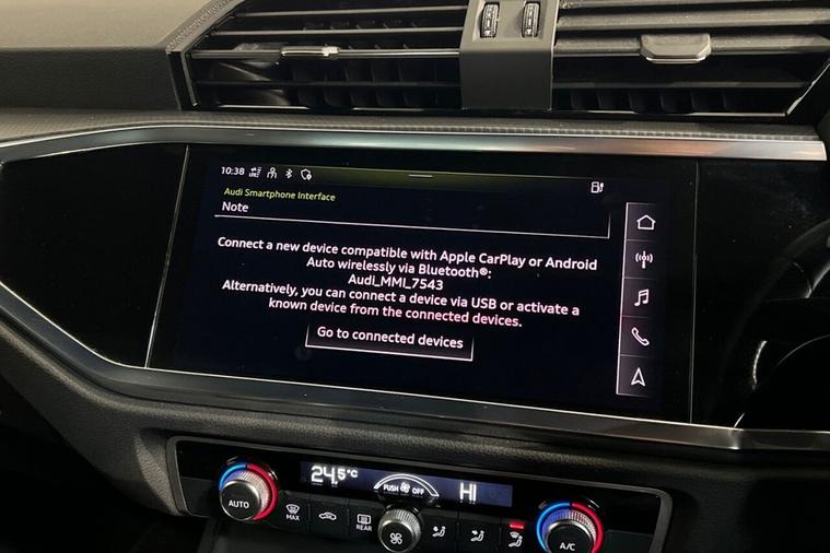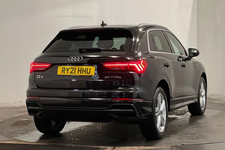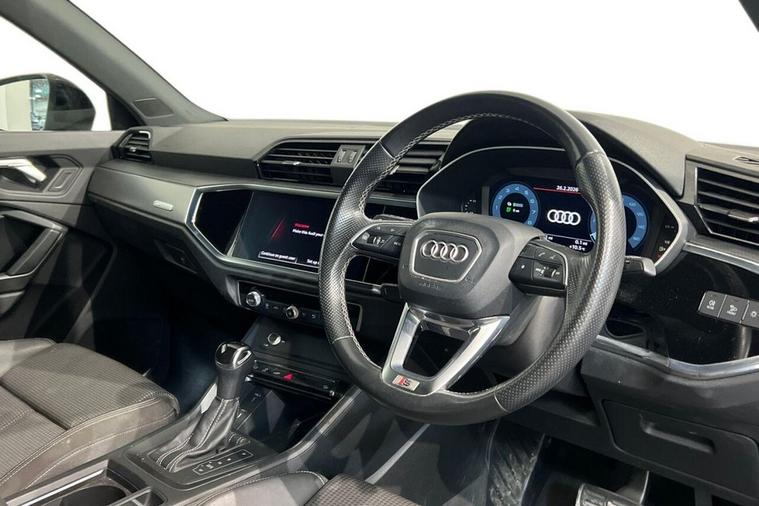 This 2021 Audi Q3 TFSIe S line offers excellent peace of mind with its MOT valid until August 2026 and a clear vehicle history check. This stylish SUV features a 1.4 litre petrol plug-in hybrid engine, meeting Euro 6 emissions standards. Inside, youll find Dual Zone Electronic Climate Control for personalised comfort, and the convenience of LED headlights with LED daytime running lights. Parking is made easier with rear parking sensors, and the Light and Rain Sensor automatically manages your headlights. Stay connected and entertained with the Audi Smartphone Interface, which includes wireless Apple CarPlay and Android Auto. The Q3 TFSIe S line stands out with its advanced plug-in hybrid technology, offering an efficient and flexible driving experience. The inclusion of wireless Apple CarPlay and Android Auto, alongside LED headlights and rear parking sensors, demonstrates a higher level of specification compared to many similar vehicles. This Audi Q3 is designed to provide a comfortable, connected, and reassuring drive for everyday use.