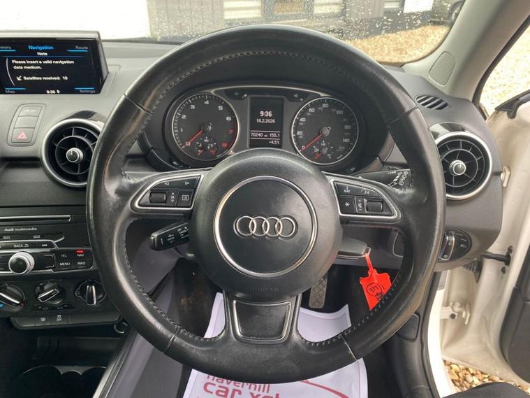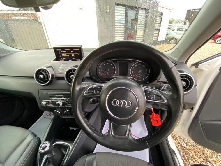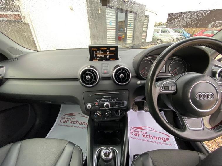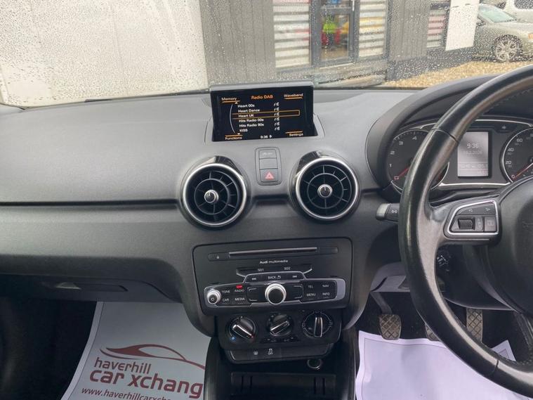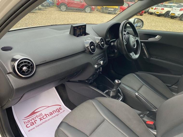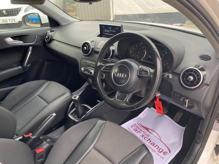 SATELLITE NAVIGATION SYSTEM+AUDI MUSIC INTERFACE+DAB RADIO+BLUETOOTH INTERFACE+AIR-CONDITIONING+LIGHT AND RAIN SENSOR+PARKING ASSISTANCE+GLACIER WHITE PAINT+ALLOY WHEELS. At Haverhill Car Xchange we would like to offer you our Audi A1 Sport Sportback (Nav) which has been finished in a Glacier White paint, Tornado Cloth Sports Seats-Steel Grey with Rock Grey Contrast Stitching. Specification Includes a 6.5 Inch MMi Display Screen in High Gloss Black-SD Card Based Satellite Navigation System, Audi Music Interface, DAB Digital Radio, Bluetooth Interface-Mobile Telephone Preparation, AUX-IN Socket, USB Charging Adapter, Voice Control of Key Telephone and Radio Functions, Connectivity Package, Air-Conditioning, Cruise Control, Front and Rear Electric Windows, Body Coloured Bumpers/Door Mirrors/ Rear Roof Spoiler and Door Mirrors with Integrated Side Indicators- Heated and Electrically Adjustable, Aluminium Door Sill Trims, Polished Tail Pipes, Automatic Halogen Headlight Activation with Light Sensor, Front Fog Lights, Adaptive Break Lights, Rain-Sensing Windscreen Wipers, 3-Spoke Multifunction Leather Sports Steering Wheel, Heated Rear Windscreen, 16 Inch 5-Spoke Sport Design Alloy Wheels, Sports Suspension, Power Steering, Hill Start Assist, Alarm, Immobiliser, Remote Central Locking and ISOFIX Anchorage Points for Child Seats.
