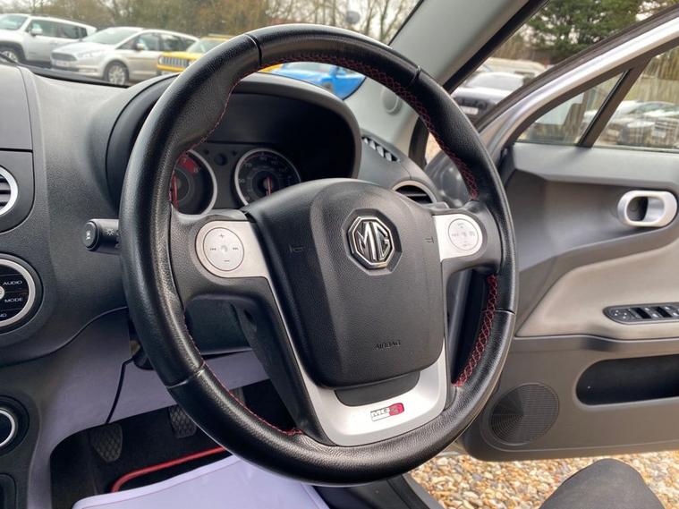 ONLY 35, 335 MILES+RADIO-CD-MP3+BLUETOOTH+ELECTRONIC AIR-CONDITIONING+LED DAYTIME RUNNING LIGHTS+METALLIC SILVER FOX PAINT+16 INCH ALLOY WHEELS. At Haverhill Car Xchange we would like to offer you our EXTREMLEY LOW MILEAGE MG MG3 3Form Sport Hatchback which has been finished in a metallic Silver Fox paint with Grey-Black Fabric Sport Seats. Specification Includes a Highline ICE- DAB Radio-CD with MP3 Compatibility, Bluetooth with Audio Streaming, USB, AUX, iPod Integration, 12 Volt Power Socket, Electronic Air-Conditioning, Gear Change Indicator, Front and Rear Electric Windows with Front Auto Down Function, Body Coloured Bumpers/Door Handles/Rear Tailgate Spoiler and Door Mirrors with Integrated Side Indicators, Body Coloured Side Sills with Black Insert, LED Daytime Running Lights, MG Logo in Headlamps, Leather MG Design Steering Wheel, Day-Night Adjustable Rear-View Mirror, Heated Rear Window, 16 Inch Alloy Wheels, Power Assisted Steering, Hill Hold, Airbags, Immobiliser, Remote Central Locking and ISOFIX Anchorage Points for Child Seats.
