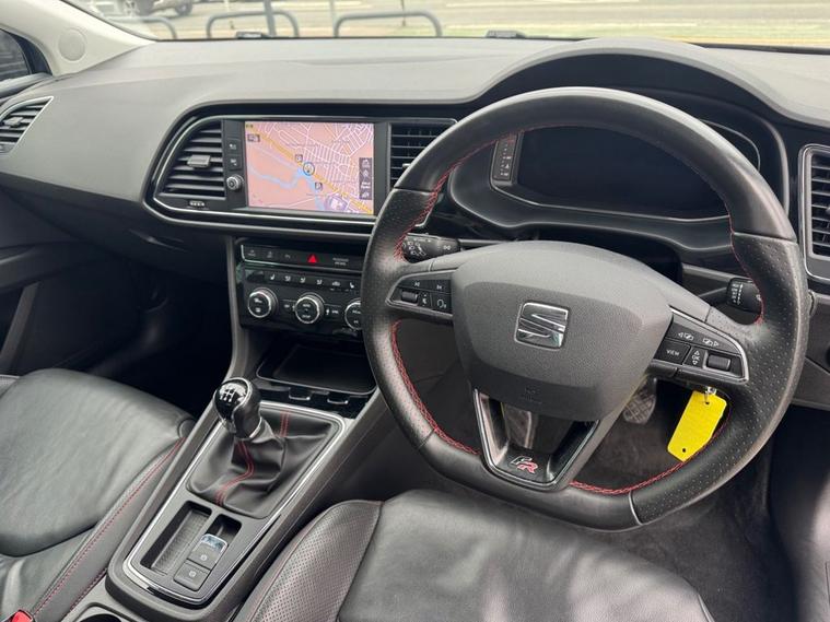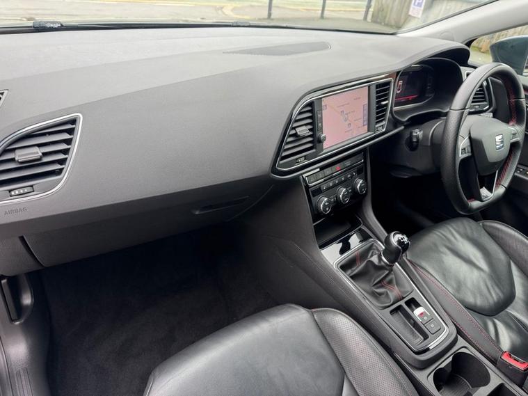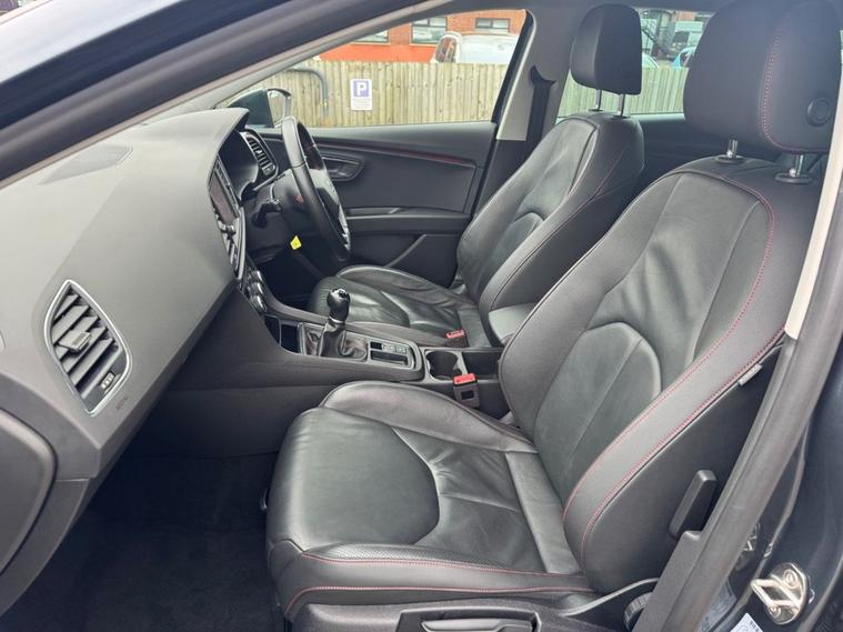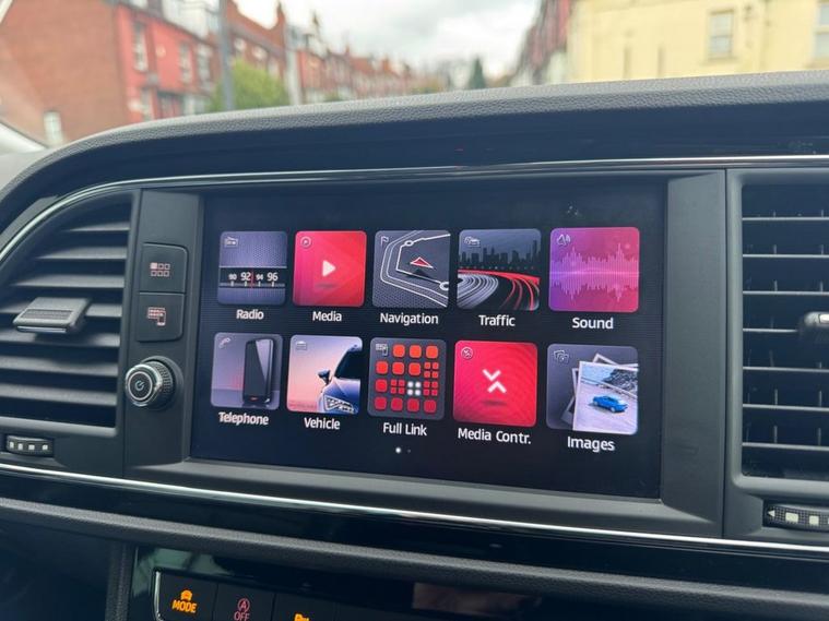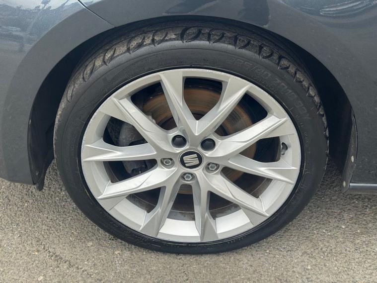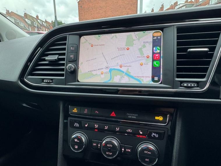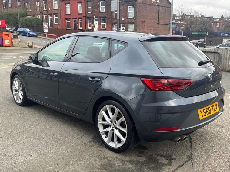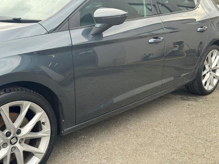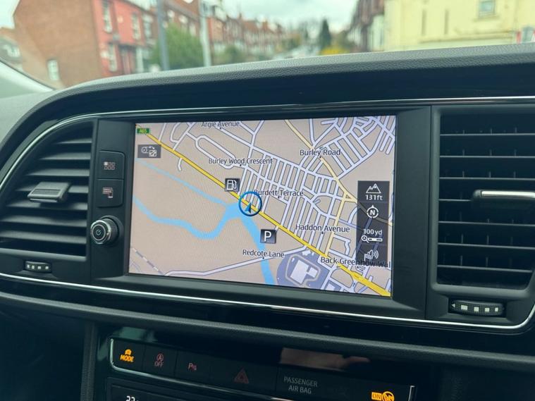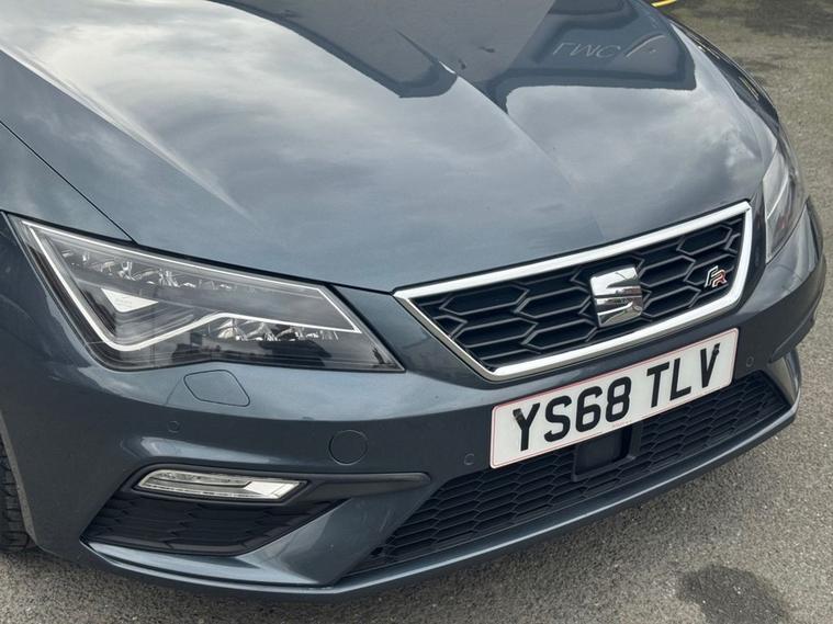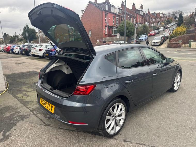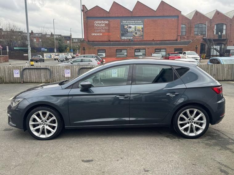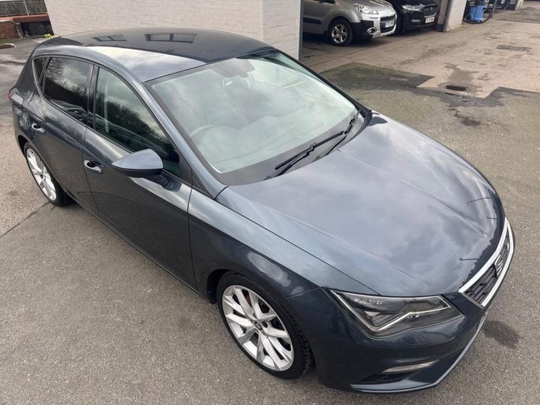 SEAT Leon 1.5 Petrol TSI EVO FR in metallic Grey paint complimented by 18 silver performance alloys. This 1.5 TSI 130BHP Euro 6 model boats an impressive 45 miles per gallon combined fuel economy. The car has has 2 owners from new and comes with full service history. Spec includes Front + Rear parking sensors, power folding wing mirrors, full leather interior with heated front seats, sat nav, apple car play / Android Auto, DAB radio, Auto headlights, Multi-function steering with cruise control, climate control with A/C, Bluetooth, USB input, Trip computer and much more. We have 4 SEAT LEON AVAILABLE please Call 01138032273 or visit dealer's website