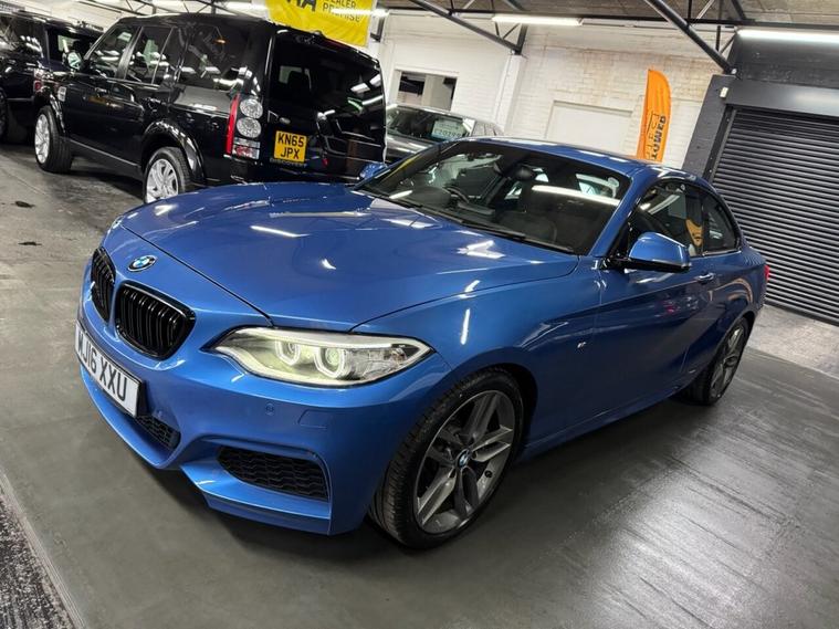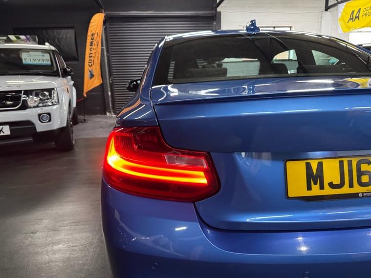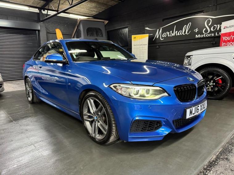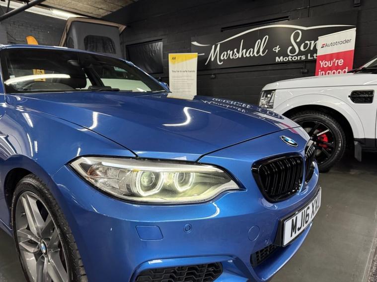 2016 BMW 218i M Sport Auto 71, 000 Miles Comprehensive Service History Estoril Blue A well-presented and highly desirable BMW 218i M Sport Automatic finished in stunning Estoril Blue metallic with Black Alcantara M Sport interior. Having covered 71, 000 miles, this example benefits from a comprehensive service history, including 6 recorded services up to 63, 000 miles, reflecting careful ownership and consistent maintenance. Specification Highlights Include: M Sport Double Spoke Alloy Wheels M Sport Rear Spoiler M Sport Braking System Rear Parking Distance Control (PDC) BMW Satellite Navigation Leather Multifunction M Sport Steering Wheel Climate Control Air Conditioning Enhanced Bluetooth Connectivity Black Alcantara M Sport Seats The 218i offers an excellent balance of performance and economy, paired with the smooth automatic gearbox for effortless driving. The M Sport styling enhances both the appearance and driving experience, making this a practical yet sporty choice. A smart, well-maintained example ready for its next owner.