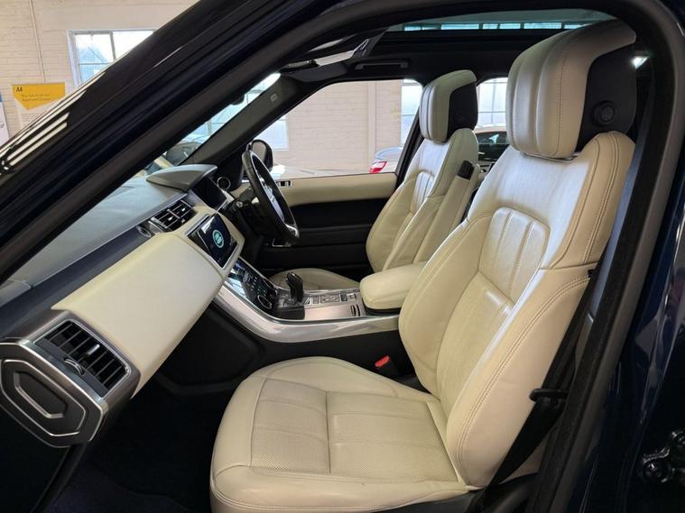A low mileage two-owner Ranger Rover Sport HSE petrol in Portofino Blue metallic trimmed in Ivory Windsor leather with Ebony Morzine headliner and Micro Mesh Aluminium interior accents. Just 28, 000 miles with full Land Rover main dealer service history, all properly recorded on the Land Rover digital system. Well equipped with panoramic glass roof, heated electric front seats with adjustable lumbar support and triple memory, heated rear seats, electric heated windscreen, dual touchscreen system with satellite navigation, voice commands, interactive driver display which allows you to display a range of information including sat nav maps in the instrument cluster area directly in front of the steering wheel, Bluetooth and smartphone pack with Apple CarPlay and Android Auto, DAB radio, cruise control, front and rear parking sensors with reversing camera, electronic air suspension with automatic Access height function (photographed here in both Access and Normal height modes), power folding electric mirrors, automatic Matrix LED headlights, rain sensor wipers, space saver spare wheel and more. Confident in all driving conditions thanks to Land Rovers intelligent all wheel drive system with a choice of driving modes including Grass/Gravel/Snow for challenging winter weather and low traction launch function for pulling away on slippery surfaces. Very stylish with gloss black window surrounds, gloss black 20 inch alloy wheels and dark privacy glass complementing the dark Portofino Blue metallic paint. Only two owners from new, supplied with two keys, full Land Rover main dealer service history and six months Momentum Plan 3 Pro warranty so that you can drive away with total confidence knowing that you are benefiting from what is probably the best warranty cover available in the UK today. Amver Select are proud to have been awarded Auto Traders Highly Rated status for 2025, an honour that we have received every year since its introduction in 2018. In our current premises for nearly two decades, we are conveniently located between Glasgow and Edinburgh and are open from 10:00am to 6:00pm Monday to Friday. We have committed to AA Cars Standards, basically the AAs Commandments of Gold Standard customer service. All cars are provided with a minimum 6 months MOT, 12 months AA basic breakdown cover and other exclusive AA member benefits. Finance available, subject to approval. Part-exchange welcome.