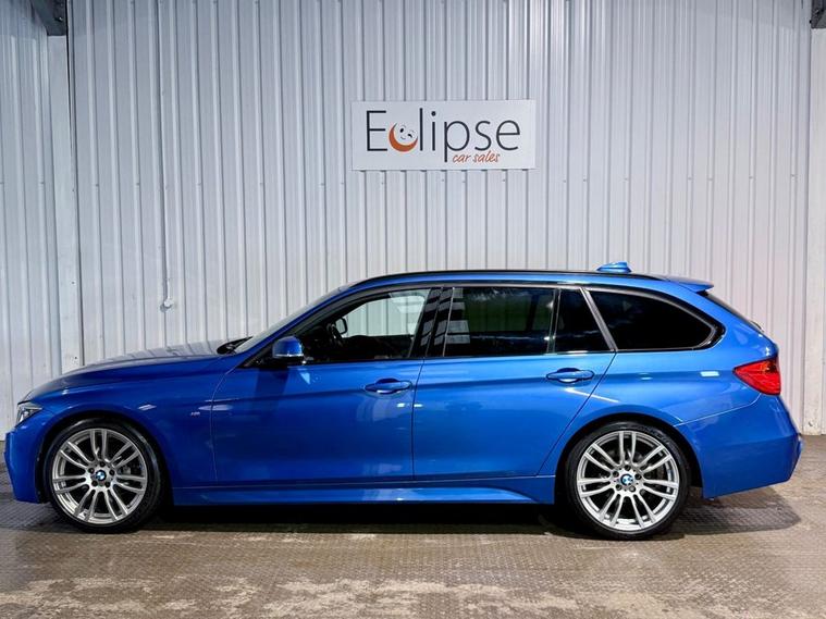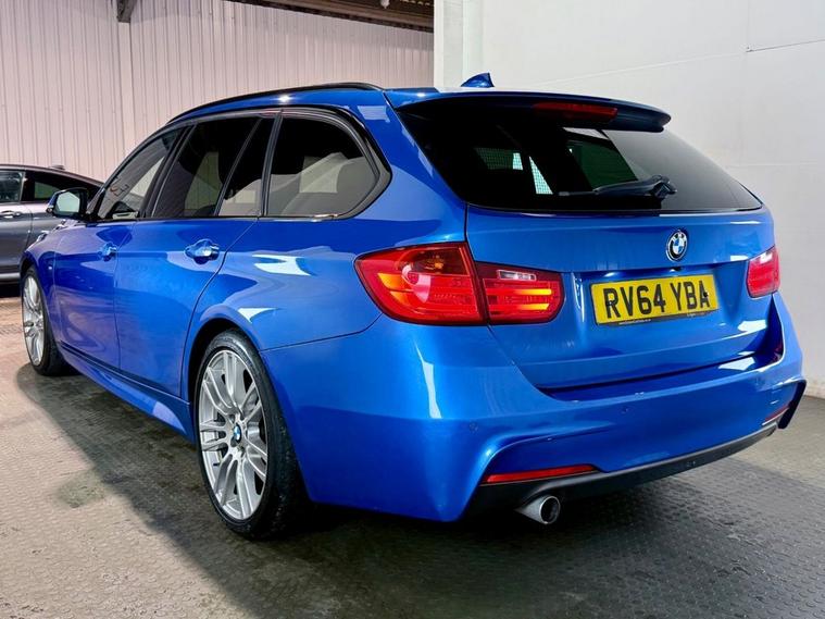BMW 3 Series 2.0 320d M Sport Touring first registered in September 2014 (64 Reg). Finished in Estoril Blue with a Black Dakota Leather Interior and 19 Inch M Star Spoke Alloy Wheels. Spec Includes Cruise Control with Speed Limiter | High Beam Assistant | Heated Front Seats | Dual Zone Climate Control | DAB Radio | Enhanced Bluetooth Preparation | Satellite Navigation | Selectable Drive Modes | Reversing Camera | Adaptive M Sport Suspension | Front and Rear Park Distance Control | BMW Business Media Package | Black High Gloss Interior Trim | Windscreen with Grey Shade Band | Sun Protection Glazing. Serviced by BMW at 17964 Miles | 25238 Miles | 33736 Miles | 41542 Miles | Serviced privately at 47976 Miles | 53329 Miles | 64651 Miles | 80364 Miles.