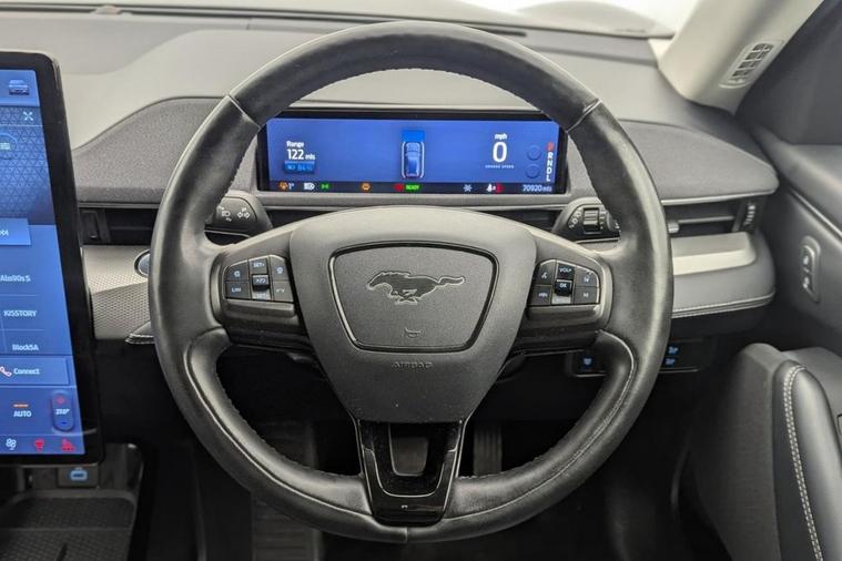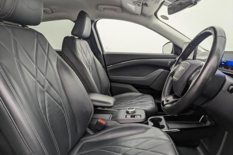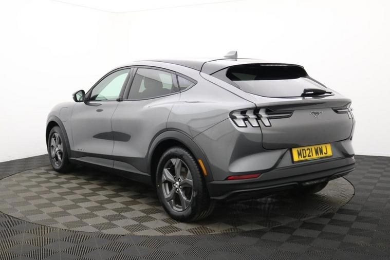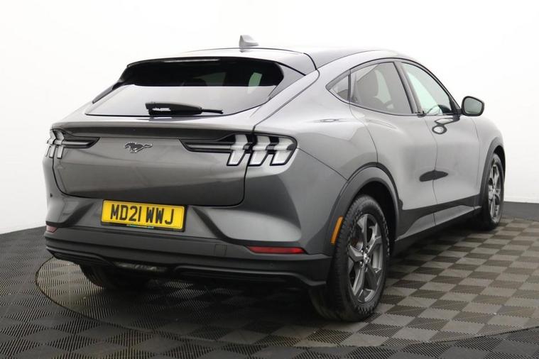 Henson Car Store presents the FORD MUSTANG MACH-E Standard Range 70kWh SUV 5dr Electric Automatic (269 ps) finished in Grey. This 2021 Ford Mustang Mach-E Standard Range boasts a single owner from new, offering a pristine example of this popular electric vehicle. As an electric car, it features a 76 kWh battery with a maximum range of 273 miles when new, providing ample capability for daily journeys. Convenience is enhanced with an E-Latch keyless entry system, complete with B-pillar keypad access, and for comfort, both the driver and passenger seats are heated. Navigating and parking are made simpler with a rear view camera and parking assistance, while LED reflector headlamps ensure excellent visibility. Experience dynamic performance with the Mustang Mach-E, accelerating from 0 to 60mph in just 6.9 seconds, a highlight that sets it apart from many comparable vehicles. Adaptive Cruise Control with Stop and Go and Lane-Centering further elevates the driving experience, offering a more relaxed and secure journey. When it comes to charging, a full charge at home using a 7kW charger takes approximately 11 hours and 24 minutes, while rapid public charging can take you from empty to 80% in as little as 43 minutes, demonstrating its practicality for longer trips. Stock Number 355