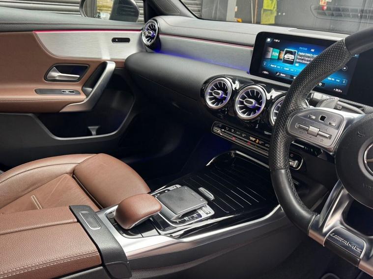 This 2019 Mercedes Benz A Class A35 AMG Premium boasts a clear vehicle history, offering peace of mind for its next owner. Powered by a potent 2.0L petrol engine and featuring a four wheel drive drivetrain, this Euro 6 compliant model delivers exhilarating performance. The AMG trim is enhanced with the AMG Night Package, adding a touch of dark styling. Inside, youll find comfort and convenience with heated front seats and THERMOTRONIC luxury automatic climate control for two zones. Practicality is also key, with a reversing camera offering a 180 degree view and parking assistance, alongside wireless charging for your devices. The A35 AMG variant truly stands out, particularly with its impressive acceleration of 0 to 60 miles per hour in just 4.7 seconds. This rapid acceleration demonstrates a level of performance that sets it apart from many other vehicles in its class. The combination of its dynamic capabilities, advanced technology like the wireless charging and sophisticated climate control, and the premium AMG Night Package ensures a refined and engaging driving experience.