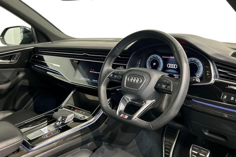 This 2023 Audi Q8 TFSI V6 Black Edition presents a remarkable opportunity with its exceptionally low mileage of just 18, 738 miles for its age, and a clear vehicle history check. This four wheel drive model boasts a powerful 3.0 litre petrol engine, meeting Euro 6 emissions standards. The Black Edition trim enhances its already striking presence, while features like HD Matrix LED headlights with dynamic indicators ensure excellent visibility. Inside, youll find the convenience of the Audi Smartphone Interface, compatible with both Android Auto and Apple CarPlay, and the comfort of heated front seats. Parking is made easier with a rear view camera, and the 2 zone automatic climate control ensures a pleasant cabin temperature for all occupants. With a substantial towing weight of 2800 kg and generous boot space, this Q8 is as practical as it is stylish. The performance of this Audi Q8 is truly impressive, accelerating from 0 to 60 miles per hour in a swift 5.9 seconds, demonstrating its dynamic capabilities. These highlights, combined with its advanced features and low mileage, set this particular Q8 apart from other vehicles in its class, offering a superior driving experience.