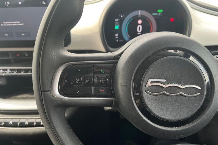 This 2022 Fiat 500e Icon is presented with a clear vehicle history, offering peace of mind for its next owner. As an electric vehicle, it boasts a 42 kWh battery with a maximum range of 199 miles when new. Charging is convenient, with a full charge at home using a 7kW charger taking approximately 6 hours, and a rapid charge from empty to 80% achievable in just 35 minutes at a public charging station. This Icon trim level comes equipped with Automatic Air Conditioning for a comfortable cabin temperature, Wireless Apple CarPlay and Android Auto for seamless smartphone integration, and a Dusk Sensor that automatically activates the headlights. The Fiat 500e Icon stands out with its efficient electric powertrain and impressive charging capabilities, making it a practical choice for daily driving and longer journeys. The 199 mile range and rapid charging options mean less time spent waiting and more time on the road. Its modern features, including the intuitive wireless smartphone connectivity and automatic lighting, enhance the driving experience, setting it apart from other vehicles in its class by offering a blend of style, technology, and eco friendly performance.