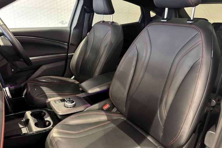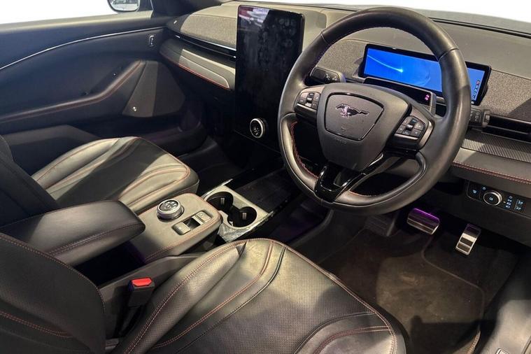 This 2022 Ford Mustang Mach-E Extended Range boasts exceptionally low mileage for its age, having covered just 32, 638 miles. As an electric vehicle with Four Wheel Drive, it offers a substantial battery total capacity of 99 kWh, providing a maximum range of 335 miles when new. This impressive electric SUV also features Adaptive Cruise Control with Stop and Go and Lane-Centering, a Wireless Device Charging Pad, Heated Driver and Passenger Seats, BLIS Blind Spot Information System with Cross Traffic Alert, and a Rear View Camera. Its MOT is valid until January 2027, offering peace of mind. The Mustang Mach-E Extended Range stands out with its dynamic performance, achieving 0-60mph in a swift 5.8 seconds, demonstrating its capability compared to other vehicles in its class. Charging is convenient, with a full charge at home taking approximately 14 hours and 36 minutes using a 7kW charger, while the fastest public charging can replenish the battery from empty to 80% in just 51 minutes. These charging times highlight the practicality and efficiency of this advanced electric vehicle.